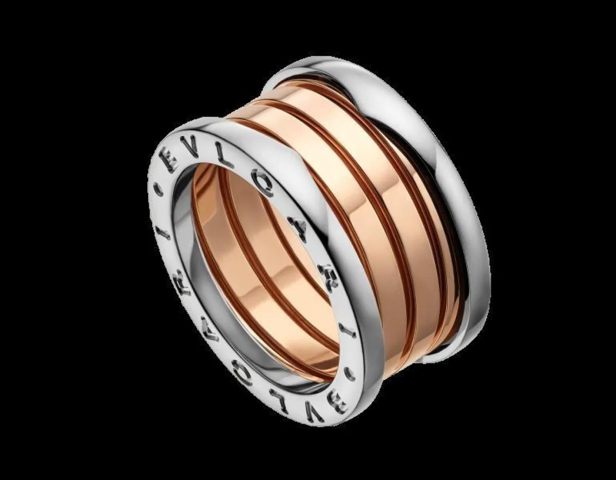 كما قدمت ماركة بولغاري Bulgari خاتم خطوبة عريض يجمع بين الذهب الوردي والذهب الأبيض.