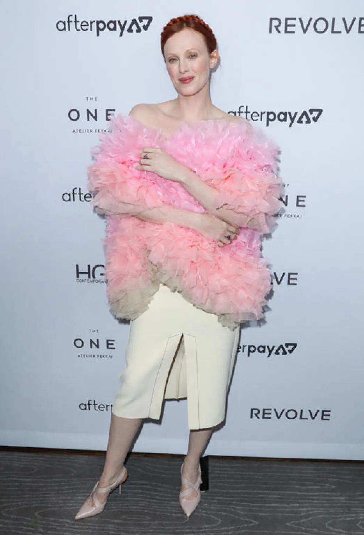 عارضة الأزياء كانديس سوانيبول Candice Swanepoel حضرت الحفل، وقد تألقت بإطلالة لافتة وأنيقة باللون الأبيض، كانت عبارة عن فستان ميدي باللون الأبيض مزين بحبات اللؤلؤ بطريقة لافتة، قصته ضيقة وأكمامه طويلة وله فتحة على الساق. وقد اختارت معه حقيبة يد وحذاء باللون الأبيض أيضاً.