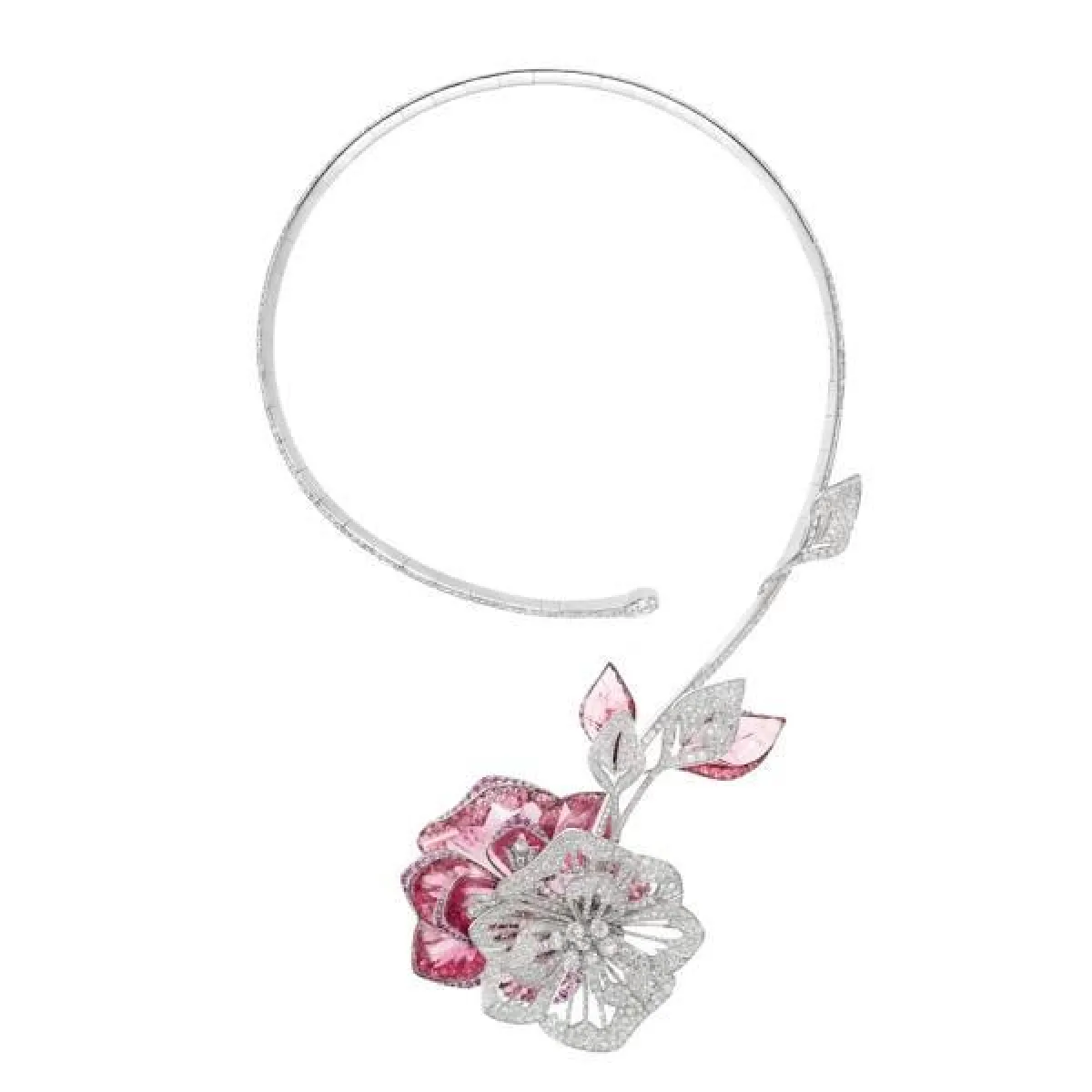 كما قدمت دار شوميه Chaumet قلادة الورود بتدرجات الوردي الناعمة والداكنة، والتي تمنحك إطلالة مفعمة بالحيوية مع فستان ناعم.