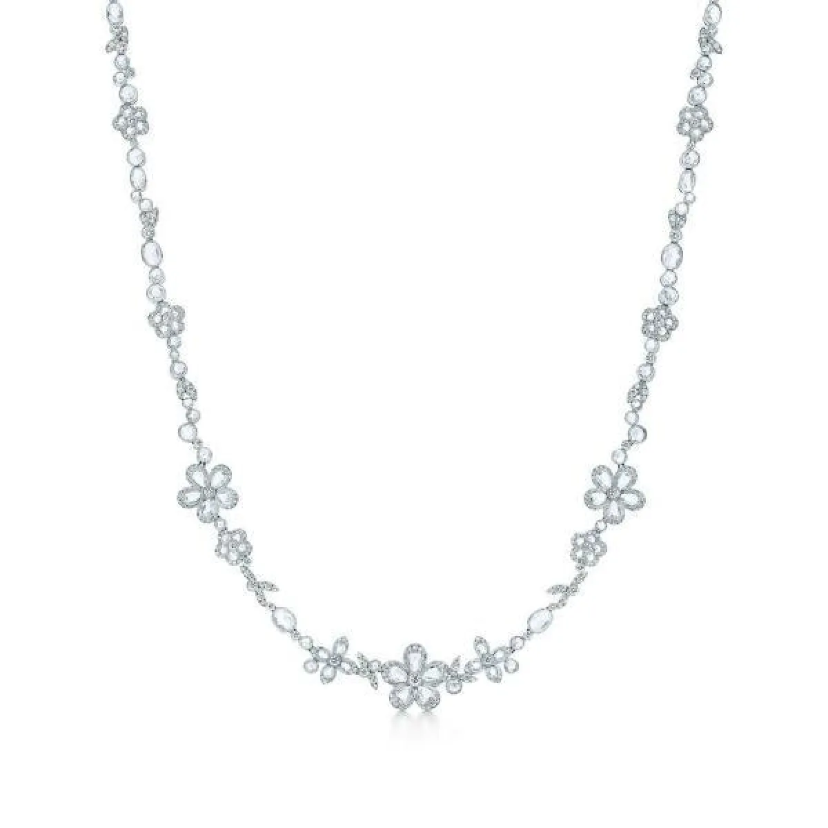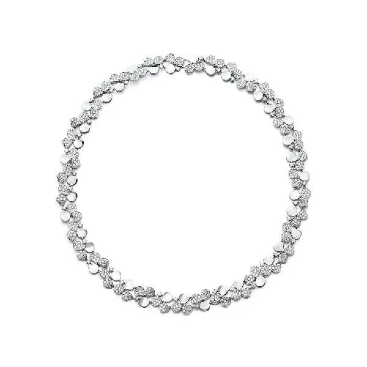 أيضاً برزت الورود في قلادات دي بيرز DeBeers الفخمة، والمرصعة بالألماس، ومع هذا تبدو بسيطة في تصميمها.