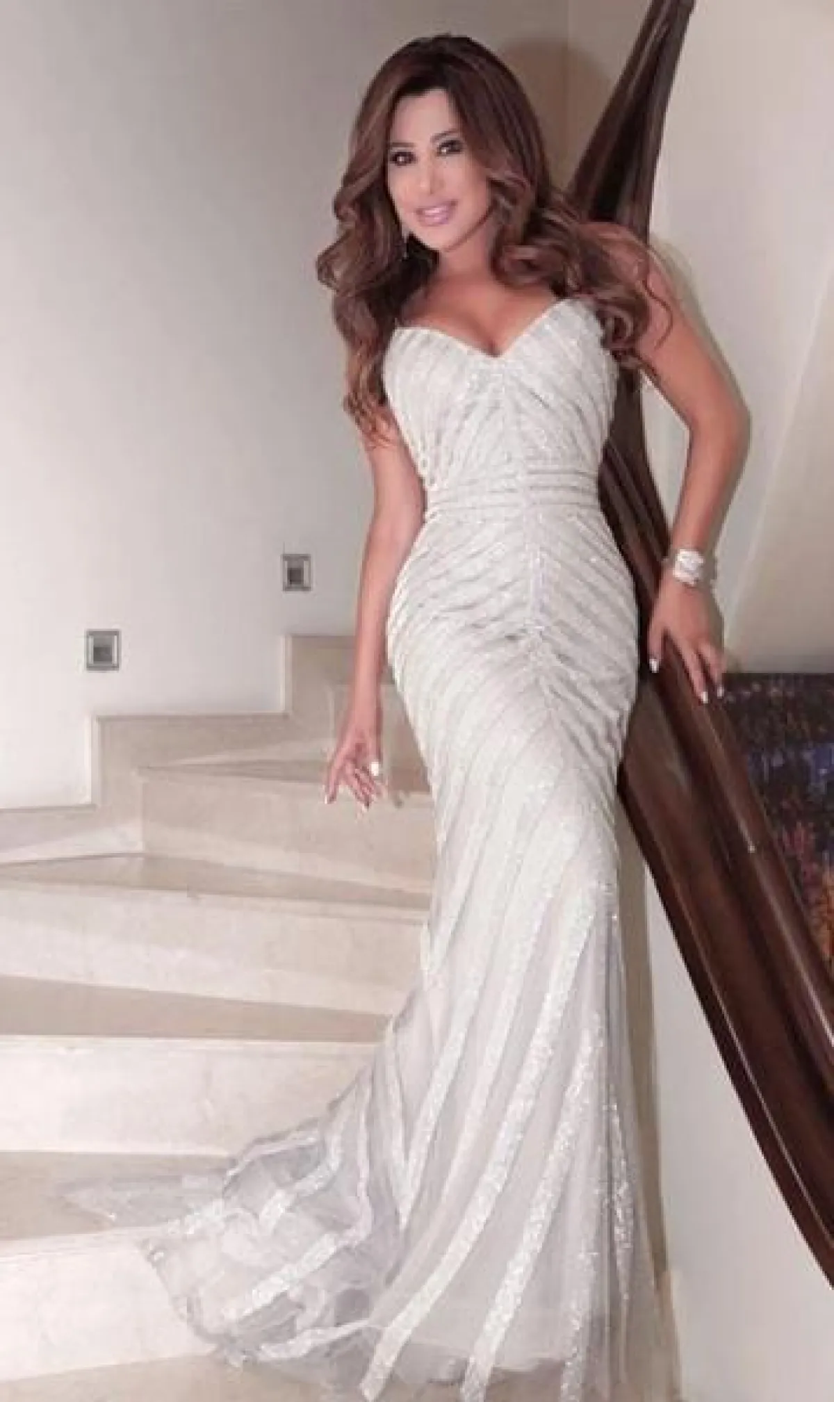 كما ظهرت نجوى ببعض الموديلات الضيقة بقصّة حورية البحر، وباللون الفضي الأخاذ.