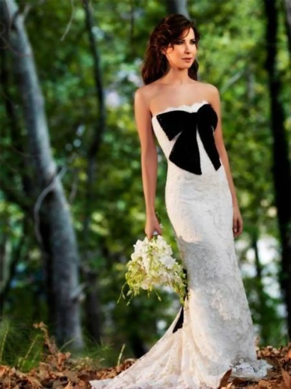 وللعروس التي تملك قواماً نحيلاً، يمكن أن تختار فستان زفاف ضيق يبرز انحناءات قوامها وخصرها النحيل، مثل فساتين نانسي عجرم الضيقة باللون الأبيض.