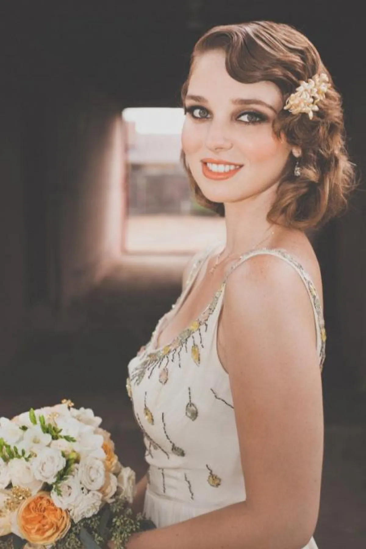 هذه التسريحة مثالية للشعر المصبوغ، إذ إنّ الخصلات المتمايلة تُبرز جمال خصلات شعركِ الملونة، من الممكن أن تضعي معها طرحة الشبيكة الكلاسيكية أيضًا، لاطلالة متكاملة من الزمن الجميل.
