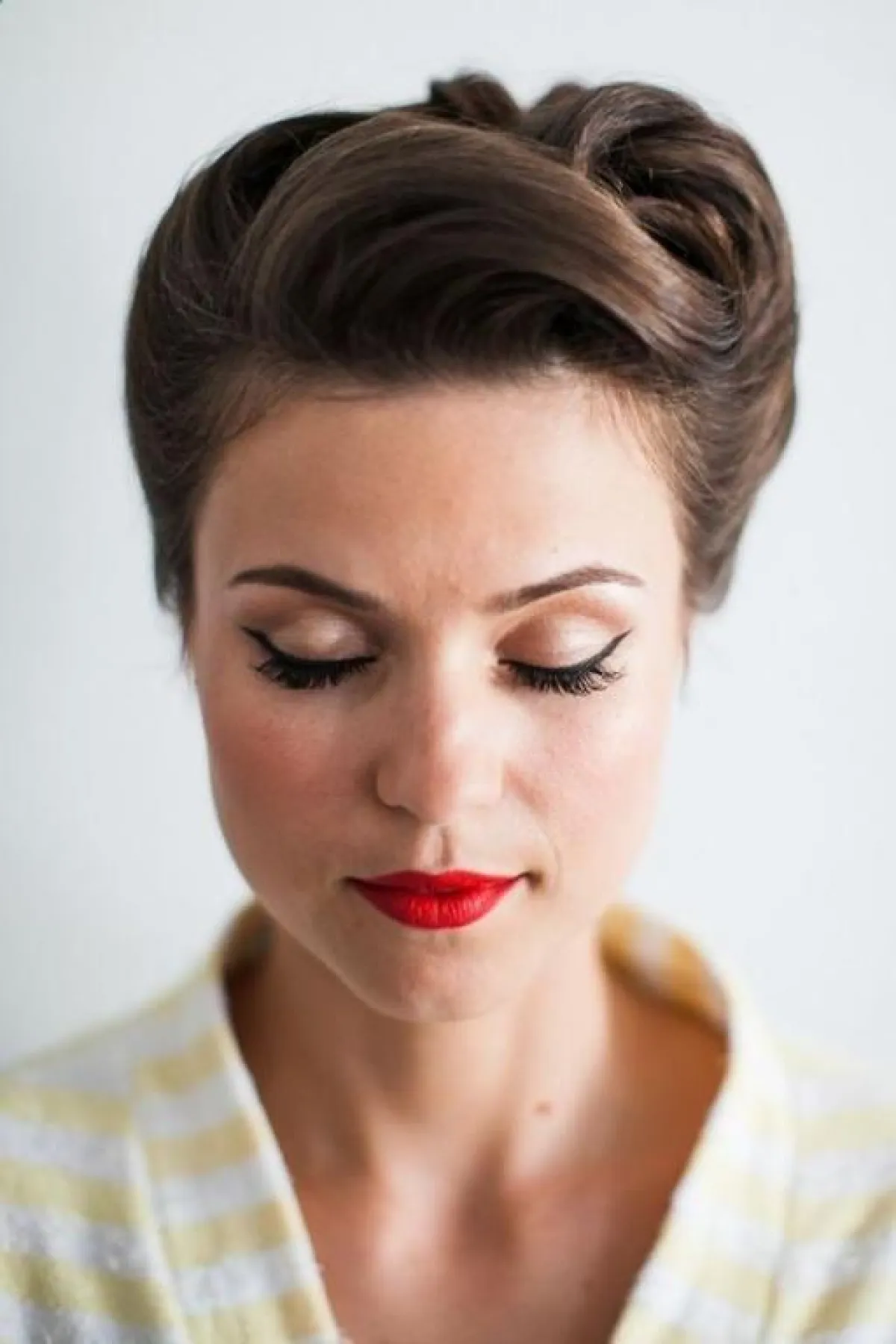 تسريحة الريترو مع الغرة المرفوعة لأعلى