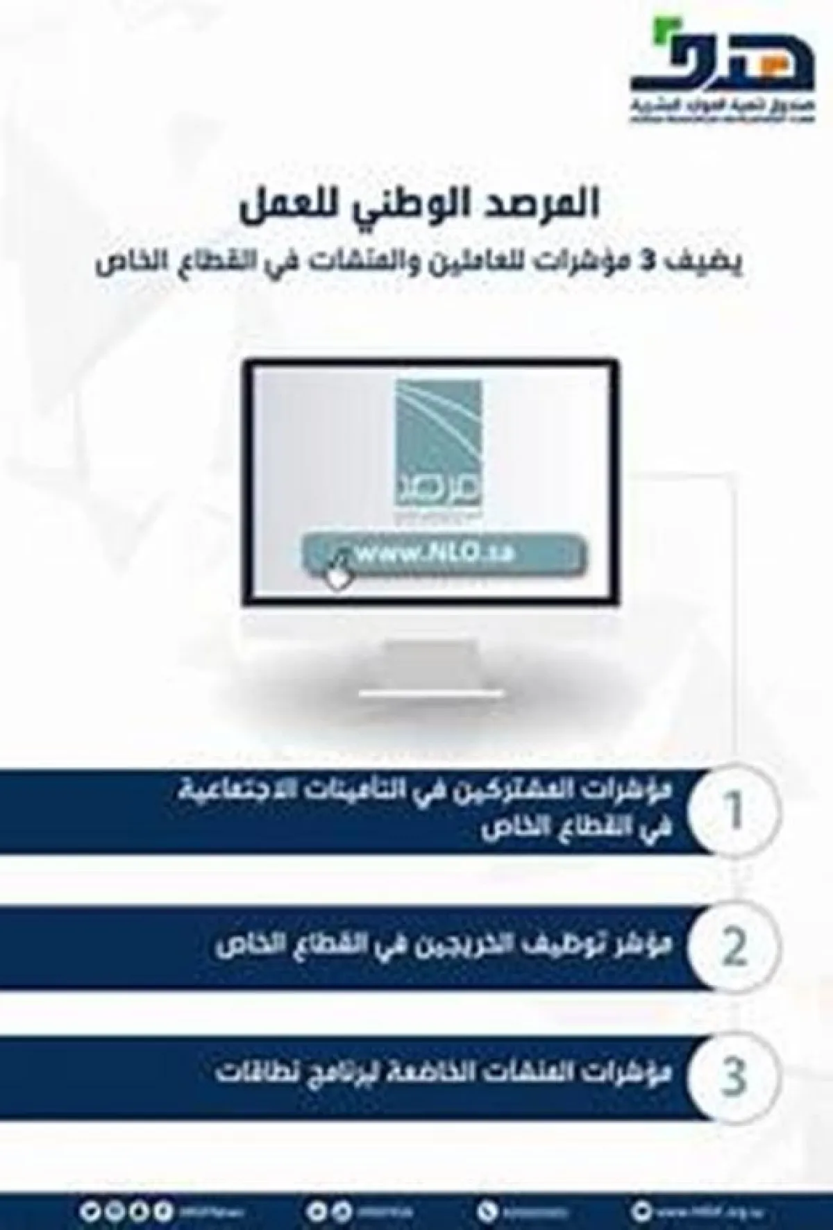 حدّث المرصد الوطني للعمل التابع لصندوق تنمية الموارد البشرية (هدف)، مؤشرات جديدة حول سوق العمل السعودي للربع الثاني من العام 2019، وذلك عبر بوابته الالكترونية وهي: مؤشرات المشتركين في التأمينات الاجتماعية في القطاع الخاص ومؤشرات المنشآت الخاضعة لبرنامج «نطاقات».