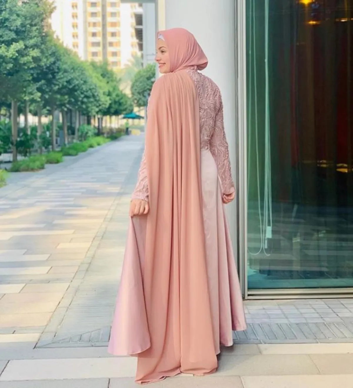 واحدة من أسهل لفات الحجاب والتي يمكنكِ اعتمادها بكل بساطة في المناسبات، كالحجاب العريض والطويل، بأن تربطيه بدبوس من المنتصف، وترفعي الأطراف على كتفيكِ، لاطلالة بسيطة مع فستانكِ الفخم والمطرز، كهذا اللوك من المدونة رهف الشامي.