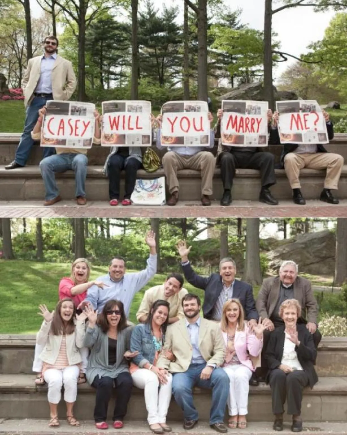من الممتع أن تشارك عائلتك وعائلتها لحظة عرض الزواج عليها، فلِمَ لا تجرب أن تجعل العائلة تحمل لافتات مكتوب عليها جملة طلب الزواج، لتفاجئها، وتضاعف سعادتها بوجود الأهل والأقارب.