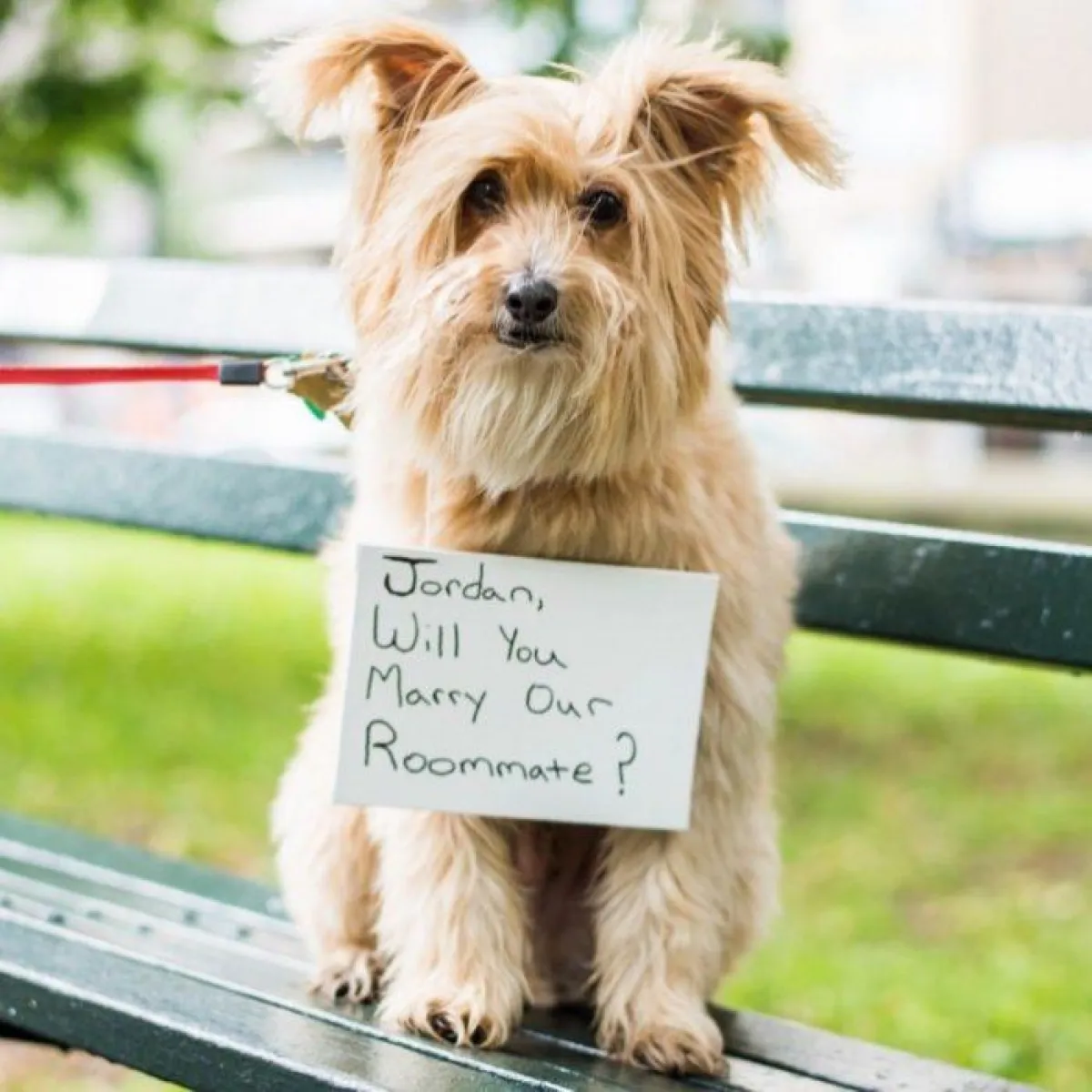 من الأفكار المميزة أيضًا أن تعلق لافتة أو روقة مع حيوانها المفضل والخاتم، لتكتشف على الفور عرض زواجك بها، وهي من الأمور الرومانسية وغير المكلفة كذلك.