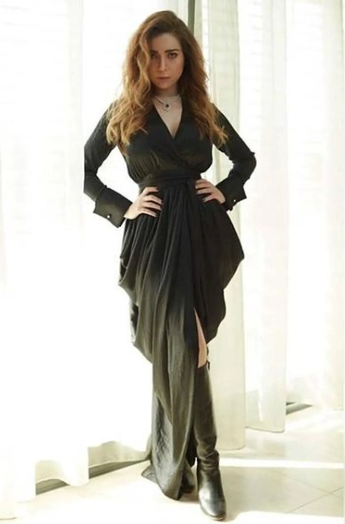اللون الأسود مثالي للشقراوات وكثيرًا ما تعتمده مي عز الدين في مختلف المناسبات، ومؤخرًا نسقت لوك دراماتيكيًّا من هذا اللون، وكان عبارة عن فستان أسود ماكسي بتصميم عصري، مستوحًى من قصة القميص من الأعلى، وقد نسقت معه جزمة عالية من الجلد، وعقدًا ماسيًّا لافتًا.