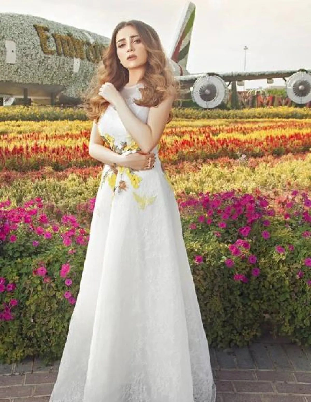اطلالة رومانسية في فستان ماكسي اختارتها مي عز الدين