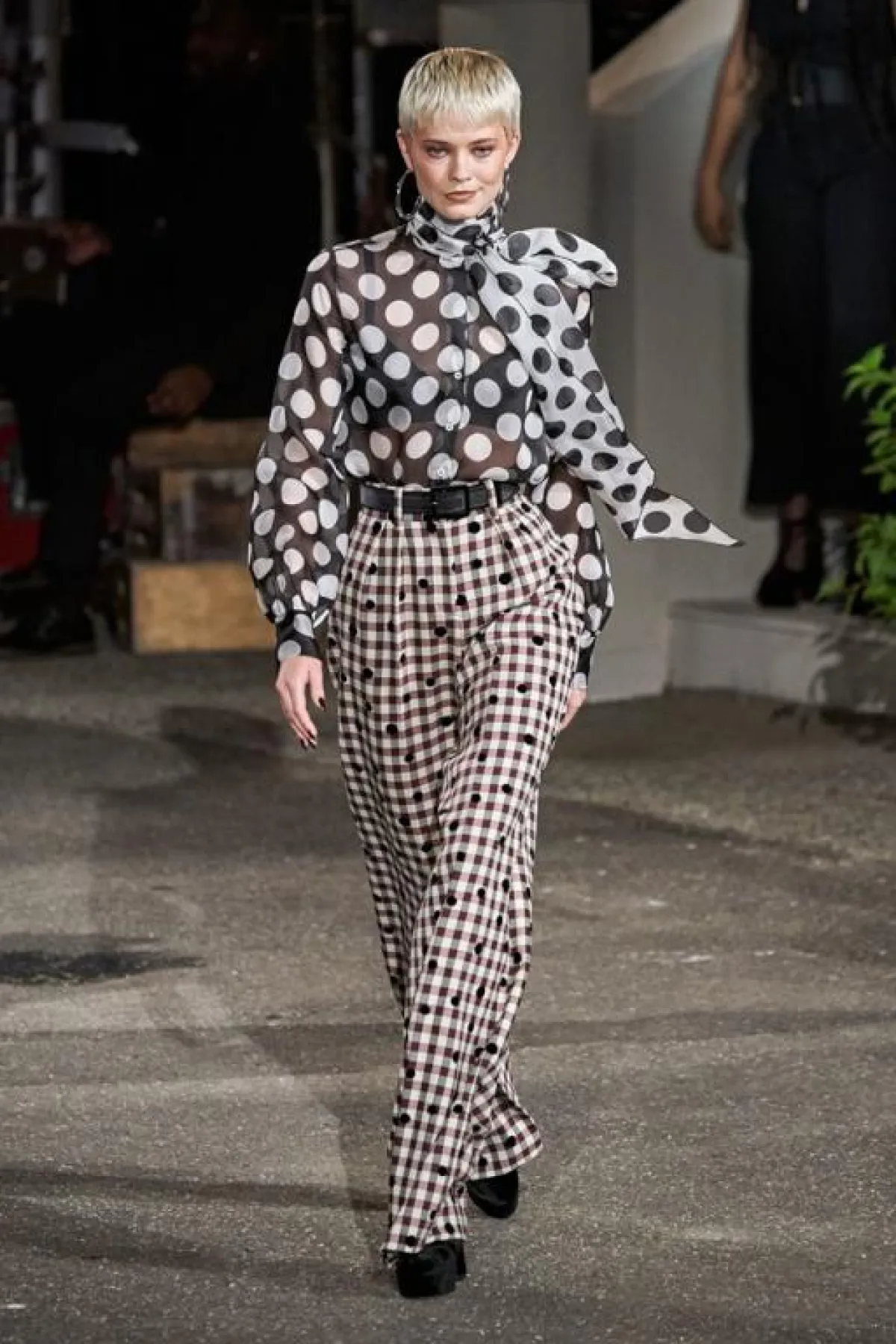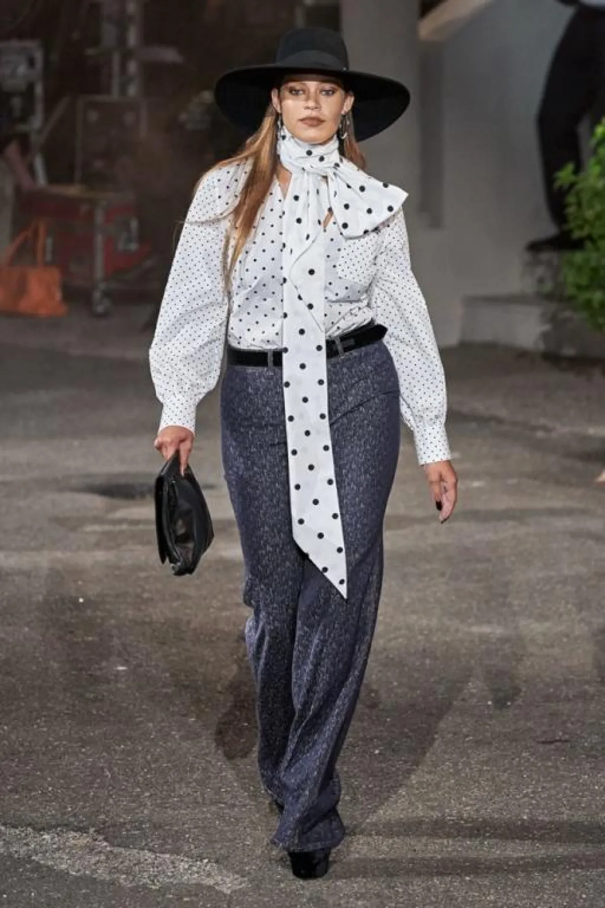 كما تميزت المجموعة بألوان الأسود، والرمادي والأبيض والنبيذي، وتنوعت بين البدلات، والبناطلين ذات الخصر العالي، إضافة إلى تنانير متوسطة الطول، والفساتين والمعاطف والجمبسوت.