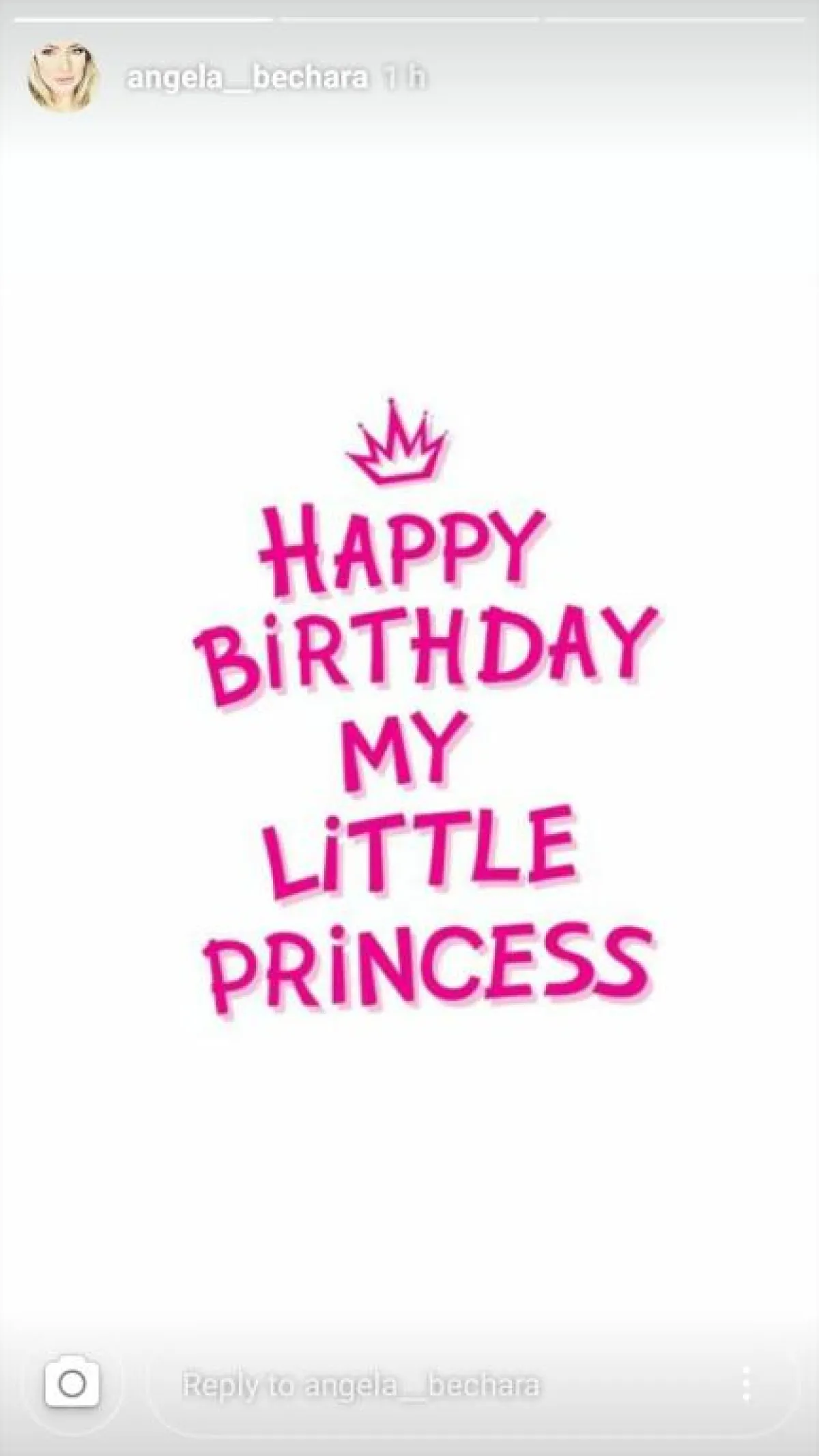 بمناسبة بلوغها الـ 8 سنوات احتفلت انجيلا بشارة بعيد ميلاد ابنتها الكبرى ميشيل، ووصفتها بأميرتها الصغيرة.