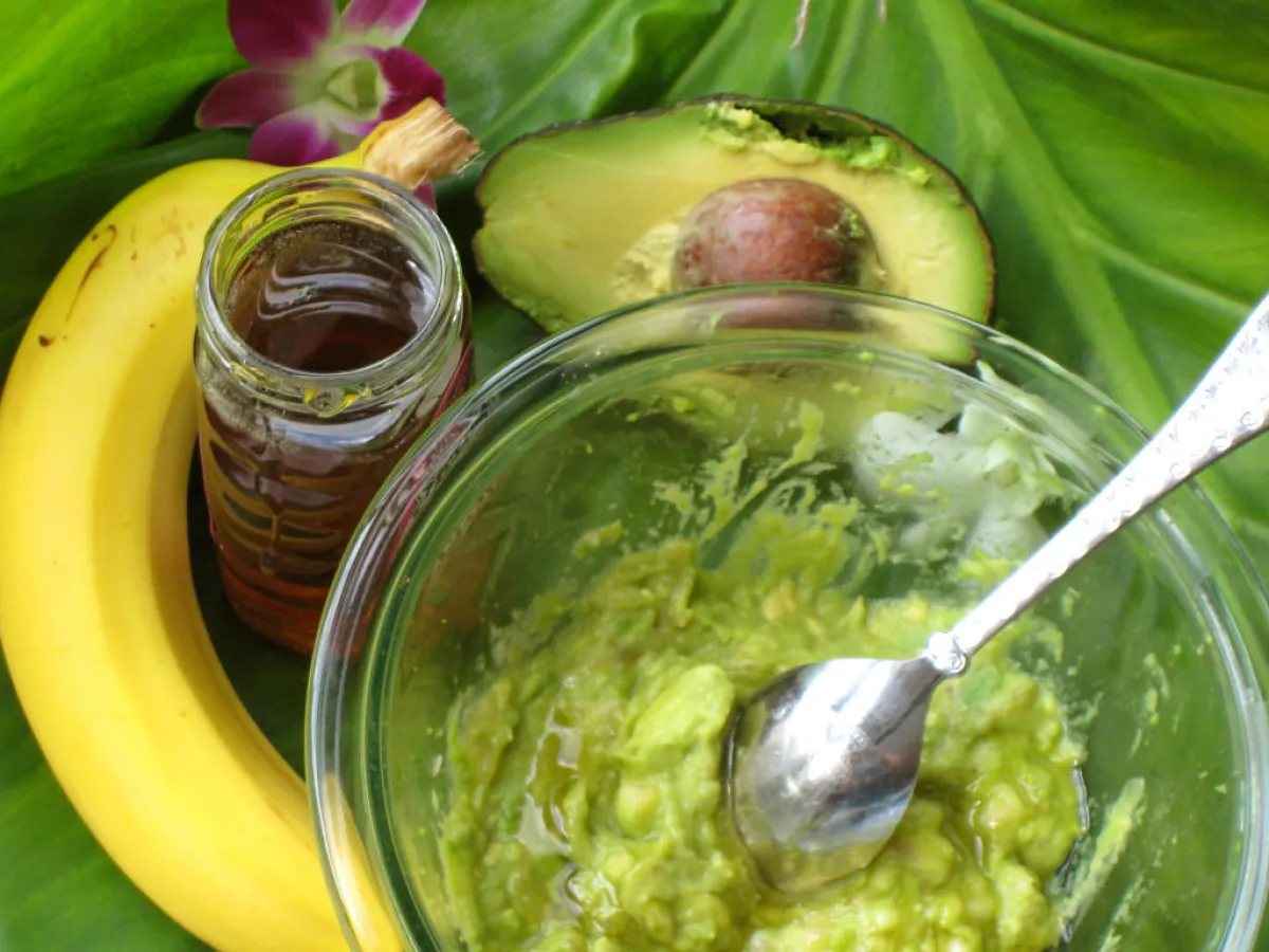 اطحني ثمرتين ناضجتين من الموز والأفوكادو جيداً بواسطة الخلاط الكهربائي، ثم أضيفي إليهما نصف كوب من زيت جوز الهند، مع الاستمرار في الطحن الى أن تحصلي على خليط متجانس. بعدها، طبقي الخليط على شعرك من جذوره وحتى أطرافه واتركيه لمدة نصف ساعة. عندها، اغسلي شعرك على الطريقة المعتادة.
