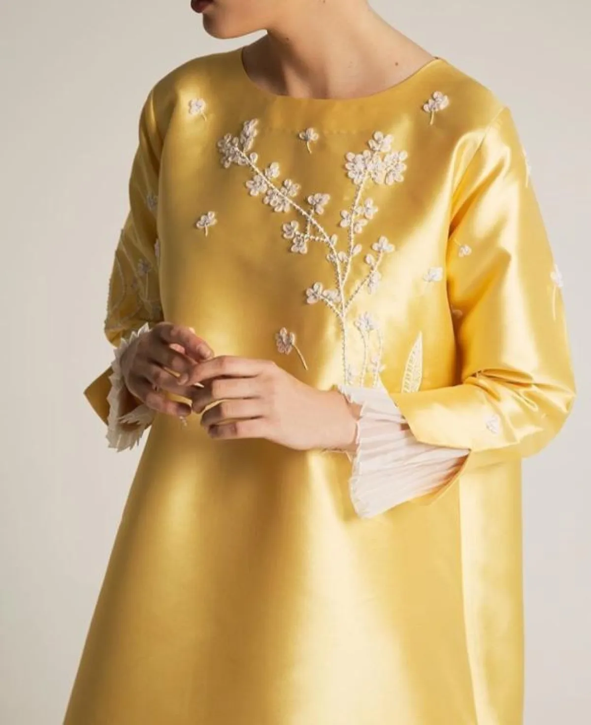 على سبيل المثال هذا الموديل من سو شيك عبايه So Chic Abaya مع الأكمام المطرزة بالورود بنهايتها ثنيات بسيطة بلون نحاسي لامع، للمسة شبابية وعصرية تمنحكِ اطلالة ذات عمر أصغر.