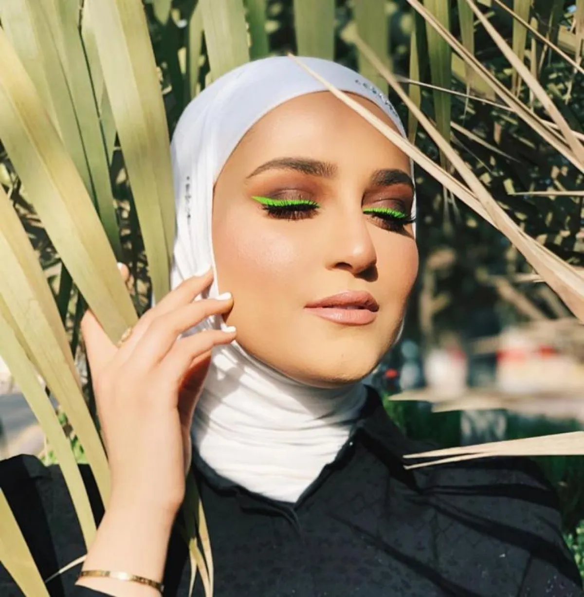 تزينت الفنانة نور الغندور بـ مكياج لامع أخضر في العينين وطلاء شفاه زهري، وظهرت خبيرة التجميل السعودية يارا النملة بمكياج أخضر فاتح في العينين واستخدمت قلم الروج البني، وفي إطلالة مماثلة تجملت بدرجة أخضر داكنة في عينيها وطلاء شفتين زهري.
