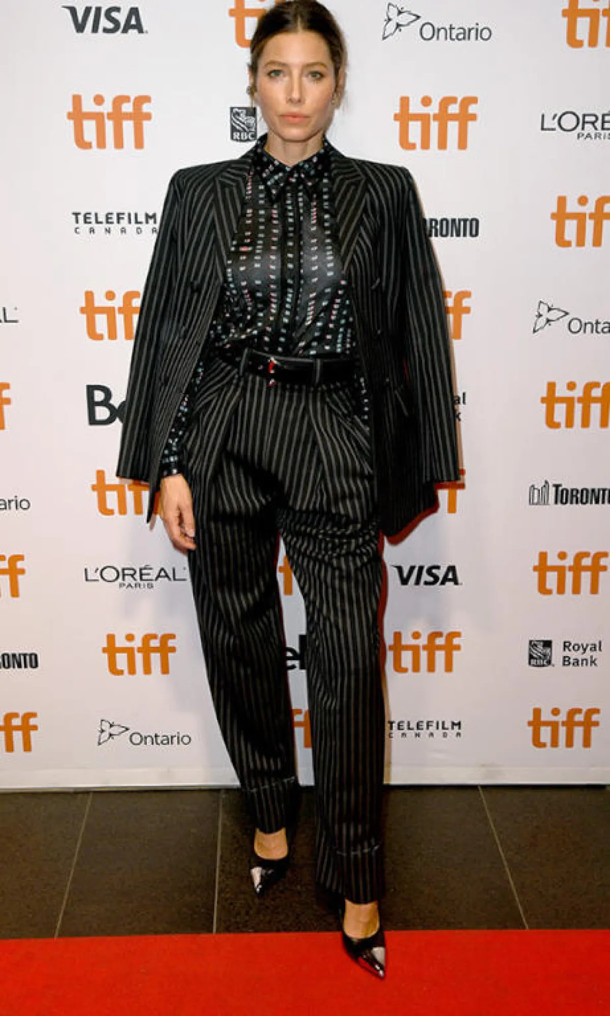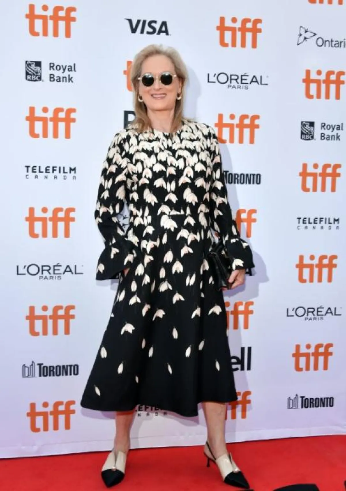 دائمًا ما تكون النجمة الأسترالية نيكول كيدمان Nicole Kidman من الأكثر أناقة على السجادة الحمراء، وقد تألقت مثل العادة في مهرجان تورونتو السينمائي في اطلالة راقية من شانيل Chanel كانت عبارة عن فستان من دون أكمام باللون الأسود، ومزين بالترتر البراق، نسقت معه حذاءً أسود أيضًا وزينت اللوك بأقراط لافتة من اللؤلؤ.