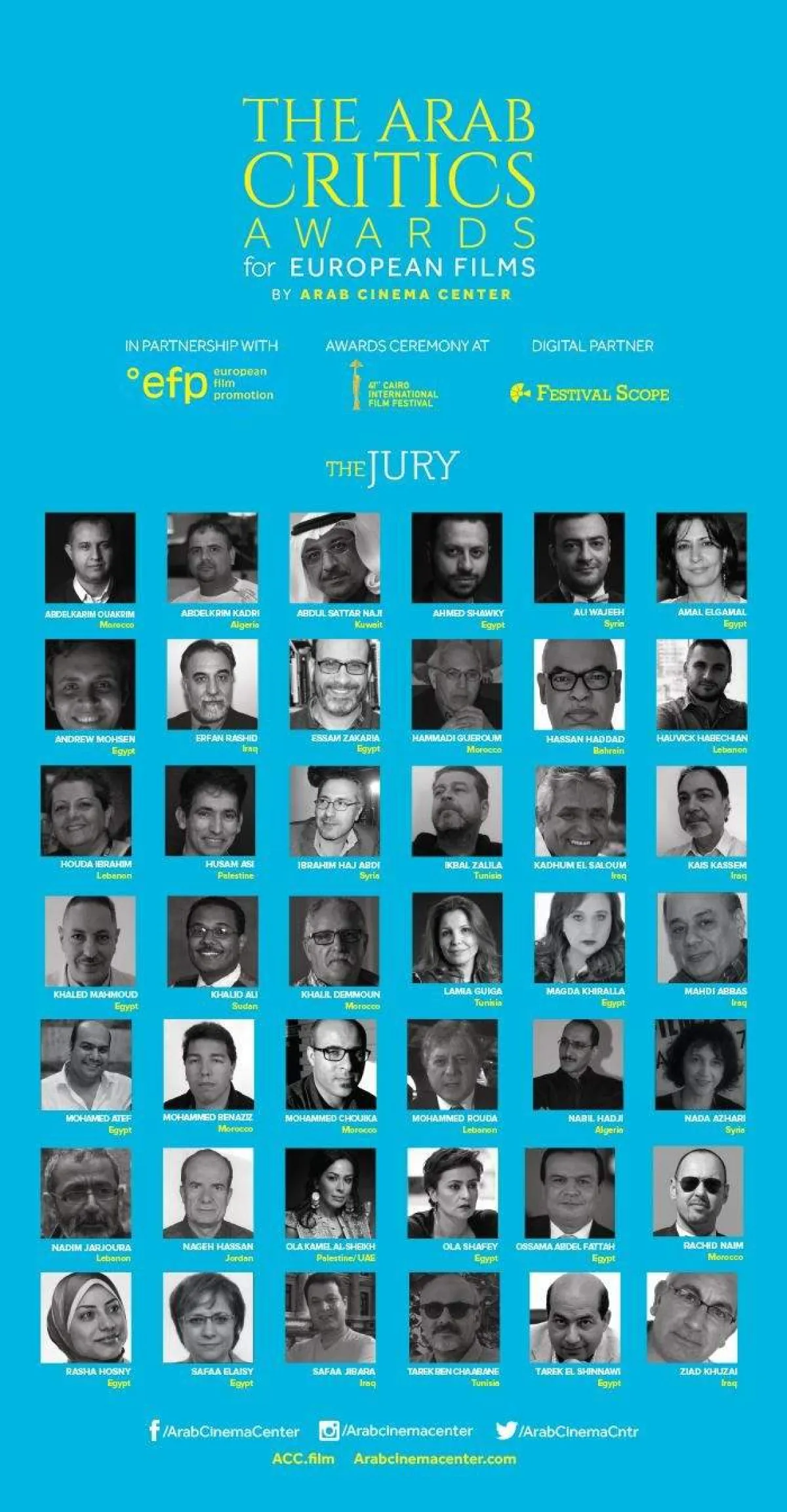 المبادرة تقام بشراكة بين مركز السينما العربية ومنظمة (ترويج السينما الأوروبية European Film Promotion)، التي تجمع 37 مؤسسة من 37 دولة أوروبية، ويشارك فيها 12 ناقدا مصريا، منهم طارق الشناوي، وأحمد شوقي، وصفاء الليثي، وخالد محمود، وأسامة عبد الفتاح، وأندرو محسن، وعصام زكريا، وعلا الشافعي، وماجدة خير الله، ومحمد عاطف، وأمل الجمل، ورشا حسني، ومن المغرب يشارك في اللجنة، حمادي كيروم، وخليل الدمّون، ورشيد نعيم، وعبد الكريم واكريم، ومحمد بنعزيز، ومحمد شويكة، كما انضم من العراق كلا من؛ زياد خزاعي، وصفاء أبو سدير، وعرفان رشيد، وقيس قاسم، وكاظم السلوم، ومهدي عباس.