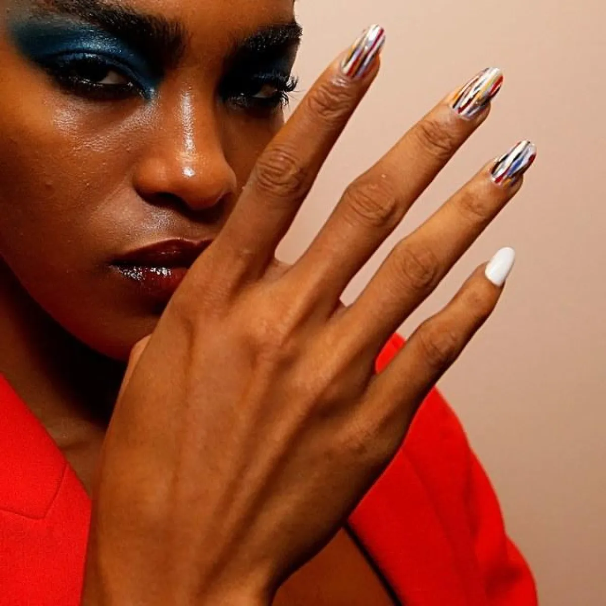 بدورها، اعتمدت دار Pyer Moss الأظافر اللامعة المتعددة الألوان، التي يطغى عليها اللون الفضي المزين بالخطوط الحمراء والبيضاء والزرقاء، مع استخدام المناكير الأبيض على الظفر الأصغر من كل يد. وهي موضة أظافر مبتكرة ومميزة، وهي ستكون منتشرة في موسم ربيع وصيف 2020.