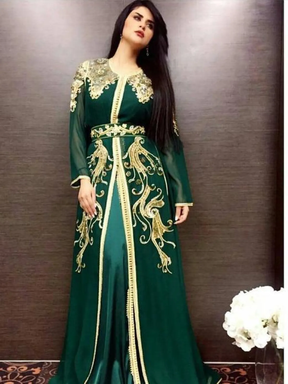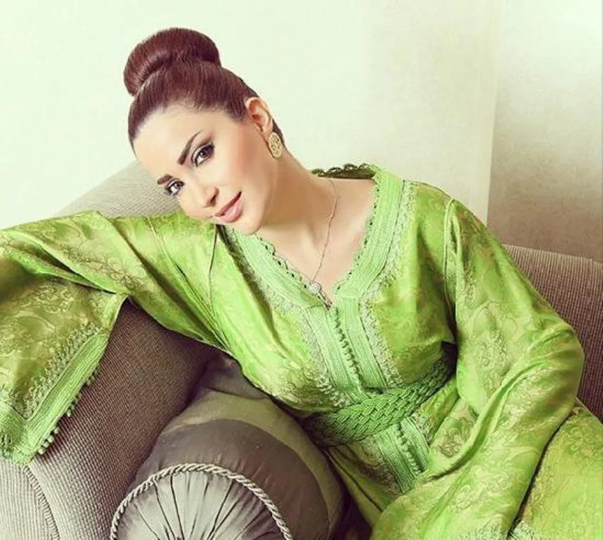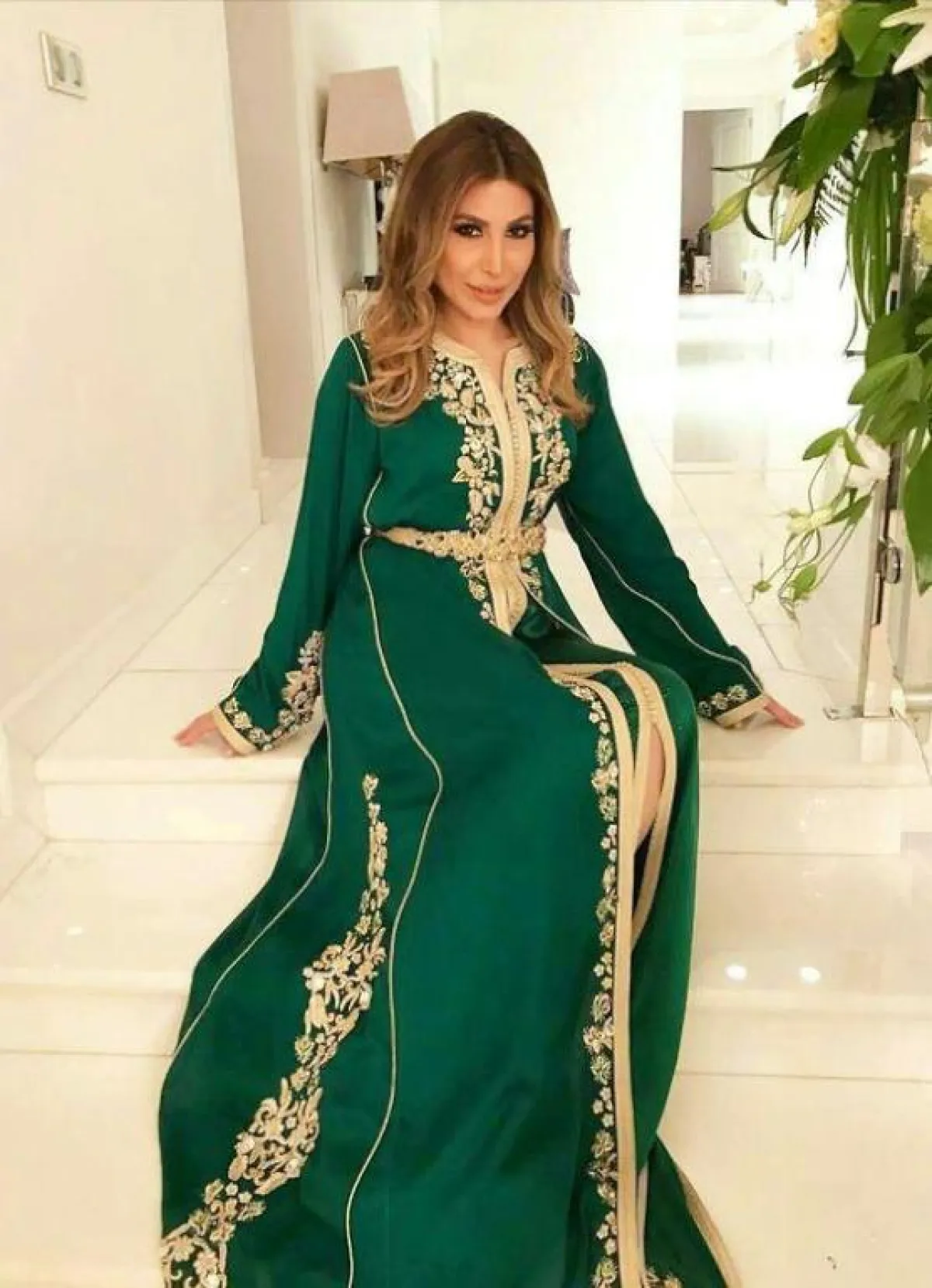 وأطلت نسرين طافش بقفطان أخضر بدرجة فاتحة مُطرز بالأخضر، وآخر بدرجة أخضر مميزة، وتطريزات ذهبية وبيضاء في المنتصف وعلى أطراف الأكمام، وتزيَّنت أنغام بقفطان أخضر داكن مُطرز بالذهبي في المنتصف وبخط مُتتالٍ على الأكمام.