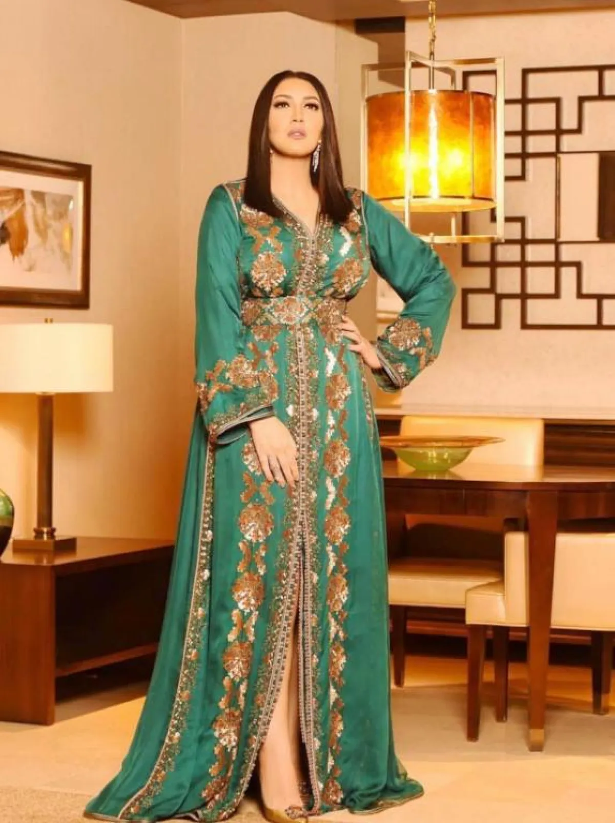 وتألقت نجوى كرم بقفطان أخضر فاتح بنقوش ذهبية على منطقة الصدر، وعن جويل ماردينا فاختارت قفطانًا من الأخضر اللامع في الأطراف والأبيض في المنتصف، ومُطرزًا من الأعلى بالزهور البنفسجية، أما روان بن حسين فتزيَّنت بقفطان أخضر داكن بحزام ذهبي وتطريزات ذهبية عدة في الأعلى وأطراف الأكمام، وتألقت يارا بقفطان أخضر مطرز بالذهبي.