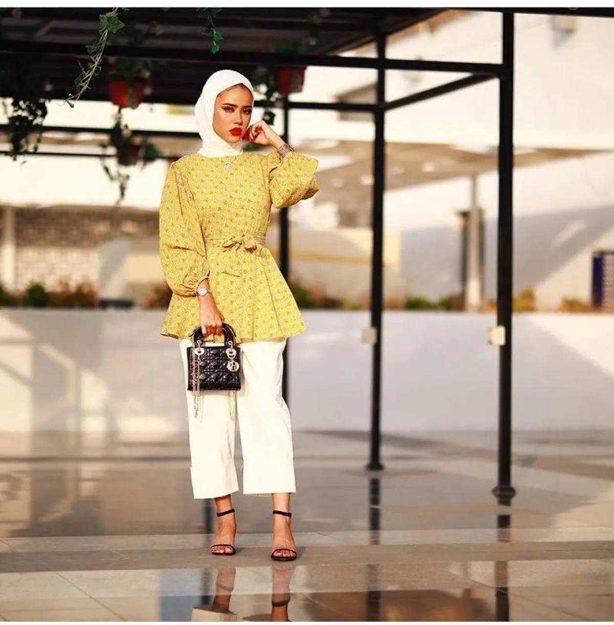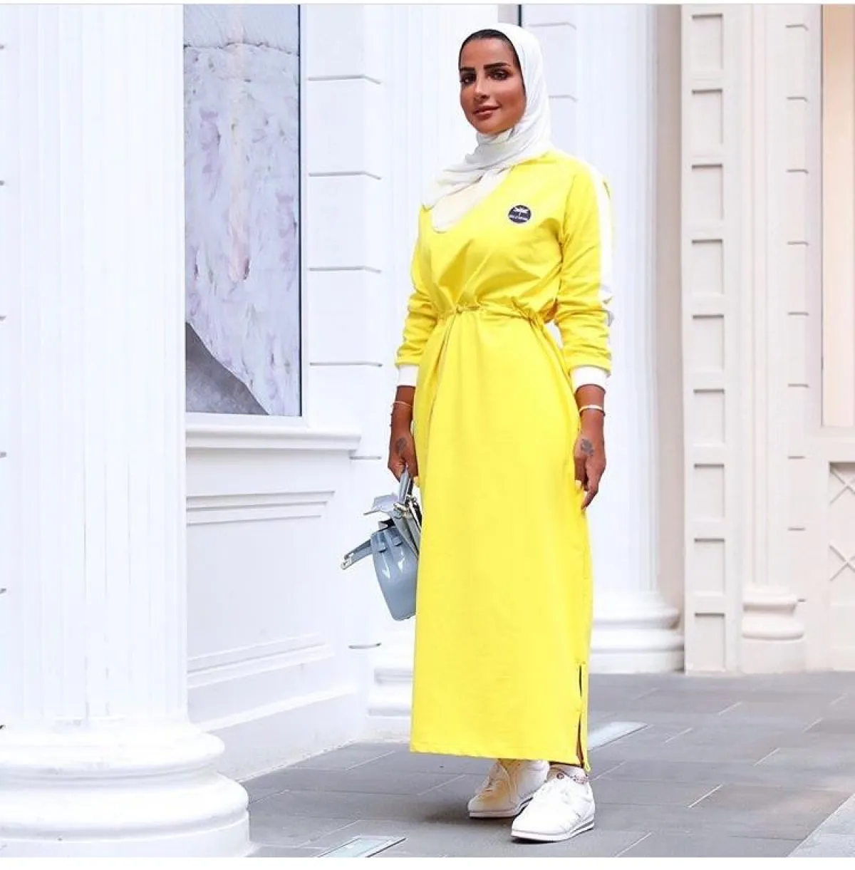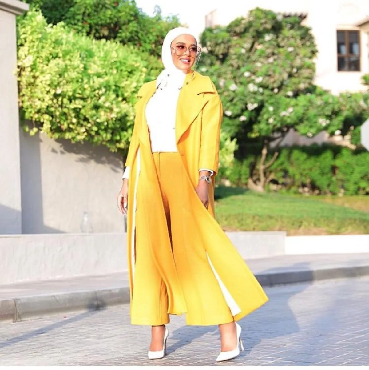 بأحدث اطلالالتها ظهرت مدونة الموضة مرمر محمد، بمعطف أنيق باللون الأصفر الفاقع، بدت غاية في الأناقة، بخاصة عندما نسقته مع بنطلون باللون نفسه لاطلالة متكاملة، وحجابها الأبيض والتوب من اللون نفسه.