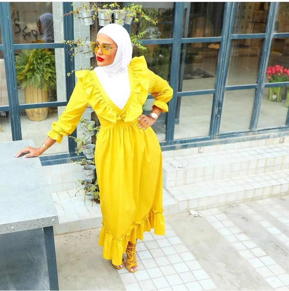 أما المدونة الخيجية خولة المراغي فقد اختارت اللون الأصفر بفستان بسيط وناعم بدرجة الـ Off Yellow أو الأصفر الباهت، مع أزرار أمامية، وحزام الخصر، مناسب للصبايا المراهقات، بمشاويرهنّ النهارية.
