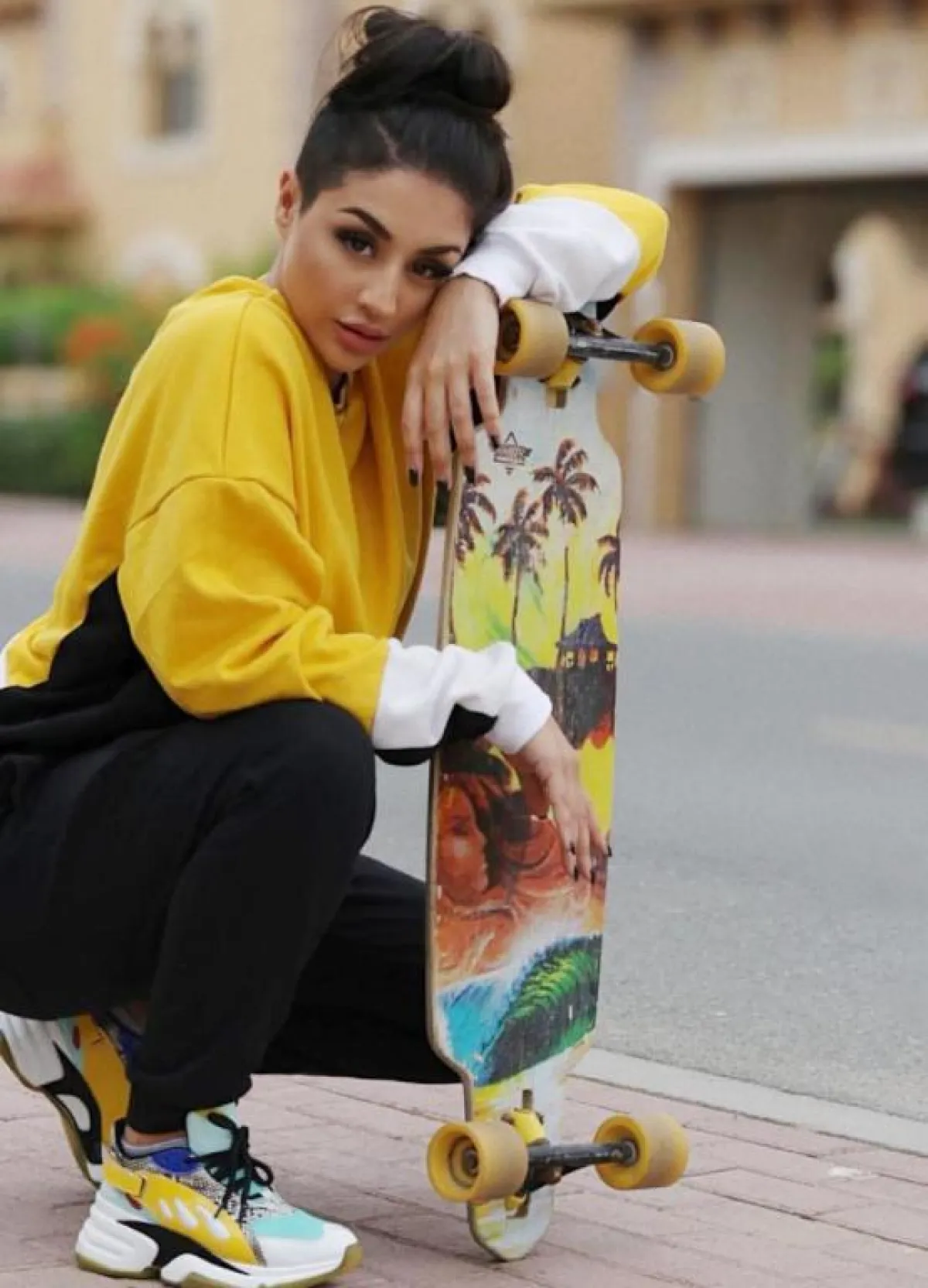 فقد ارتدت بنطالًا وبلوزةً باللون الأسود بطبعات ملوَّنة من علامة أديداس، كما تأنقت ببنطال أسود، وجاكيت مميز باللون الأصفر منقوش بالزهري والبرتقالي والأخضر، وأطلت ببلوزة بيضاء، وبنطال كحلي واسع بخطوط بيضاء عريضة، ونسَّقت جلابيةً بيضاء مخططة بالأسود، وبنطالًا أبيضَ، وحذاءً رياضيًّا، واختارت بنطالًا أصفرَ واسعًا مع بلوزة سوداء، وتجمَّلت بقفطان أبيض بوشاح وحزام ذهبي، وتزيَّنت بفستان طويل بقبعة باللون الأحمر، وارتدت عباءة سوداء، ونسَّقت معها حقيبة خصر، وظهرت ببنطالٍ وبلوزةٍ رياضيين باللون الأحمر، وارتدت بنطالًا وبلوزة باللون الأسود، مع حذاء رياضي أبيض، وطهرت ببلوفر أصفر مزيَّن بالأسود والأبيض، مع بنطال أسود، وحذاء رياضي ملوَّن.