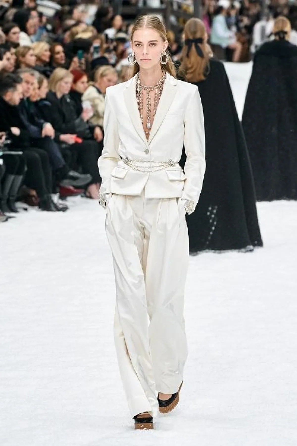 بدلات دار Chanel جاءت بتصميم فريد ومميز يناسب ذوات الشخصية المجنونة واللواتي يرغبن بترك بصمة حتى في مكان العمل. ننصحك بتجربة إحدى البدلات التي جاءت باللون الأبيض بشكل كامل، والتي بالتأكيد ستمنحك إطلالة جذابة.