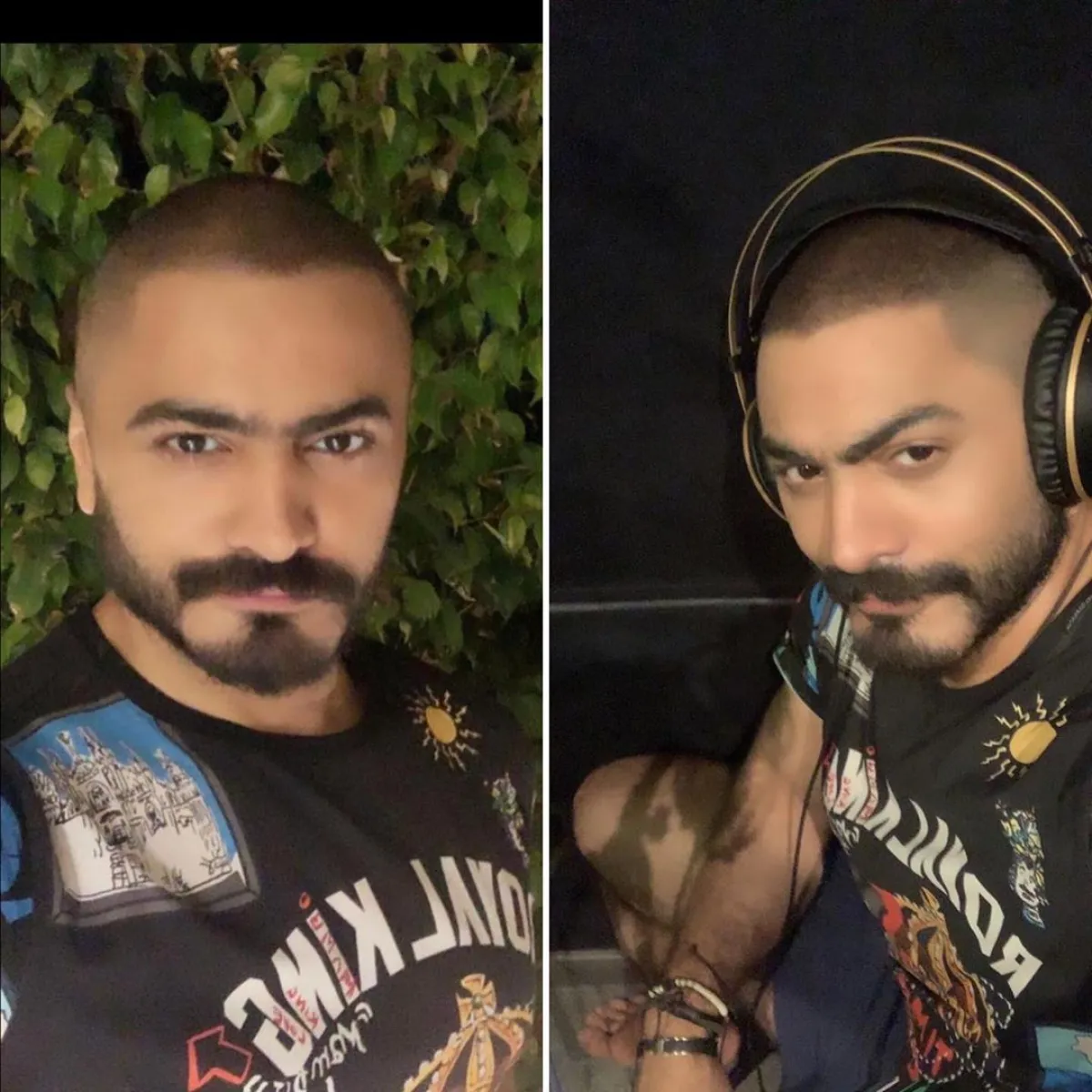 وبعدها نشر صورة أخرى وعلق عليها قائلاً: "حسيت في أول صورة نزلتها أني شبه نفسي في مسلسل "آدم وعمر وسلمى"3 ، فتجرأت أكتر واديتها موس ورزقنا على الله عشان بس يبقى في اختلاف وتجديد"، ليتفاجأ بتعليق من زوجته الفنانة بسمة بوسيل قائلة: "أنا نفسي مش عارفه أشيل الموس من ايده بس اللوك الجديد ده المفضل عندي نعيماً يا حبيبي، وقمر في كل حالاتك".