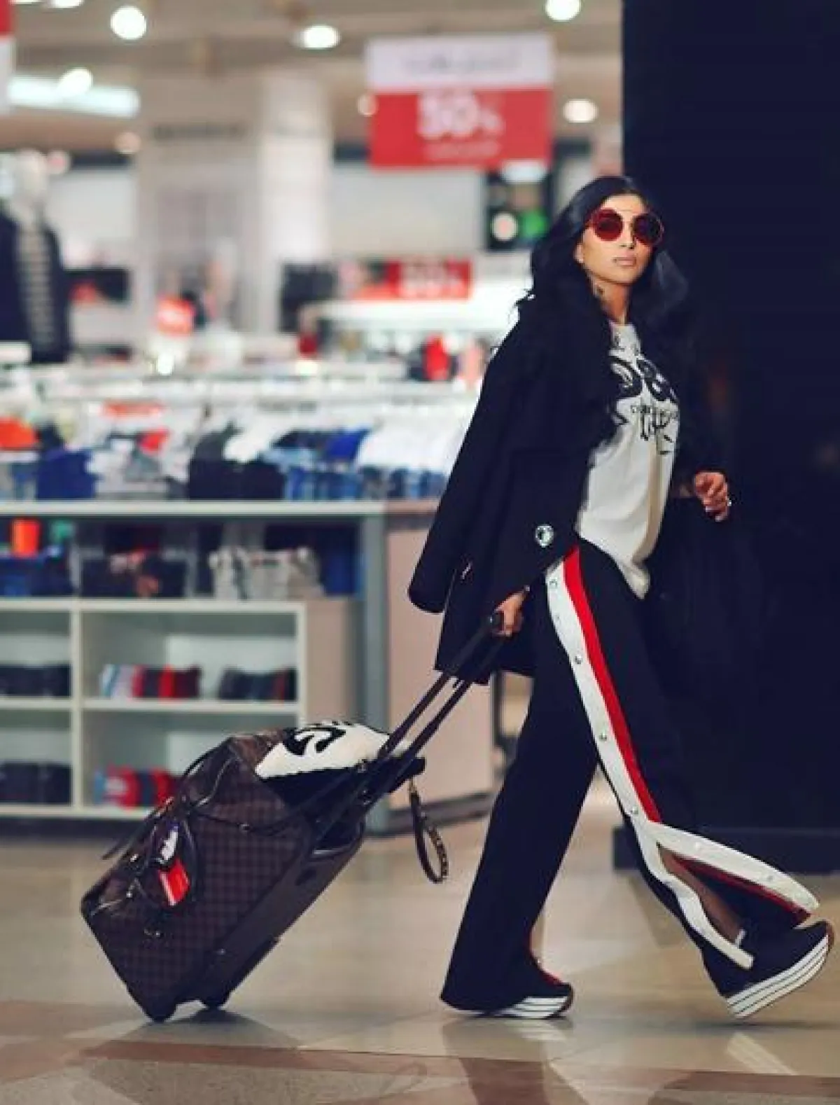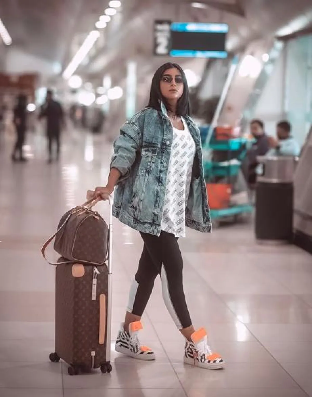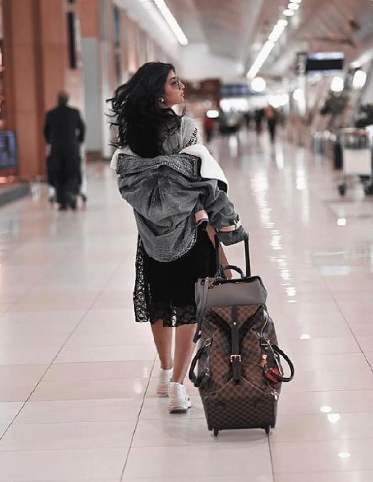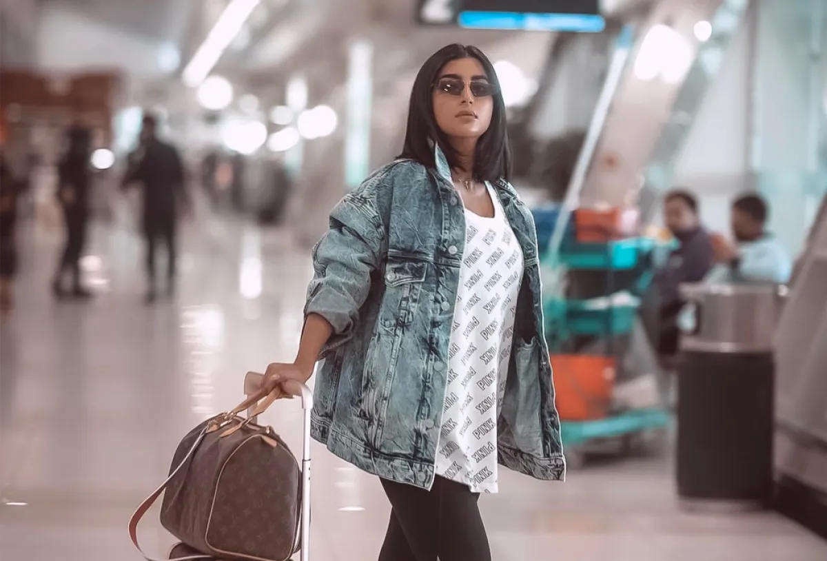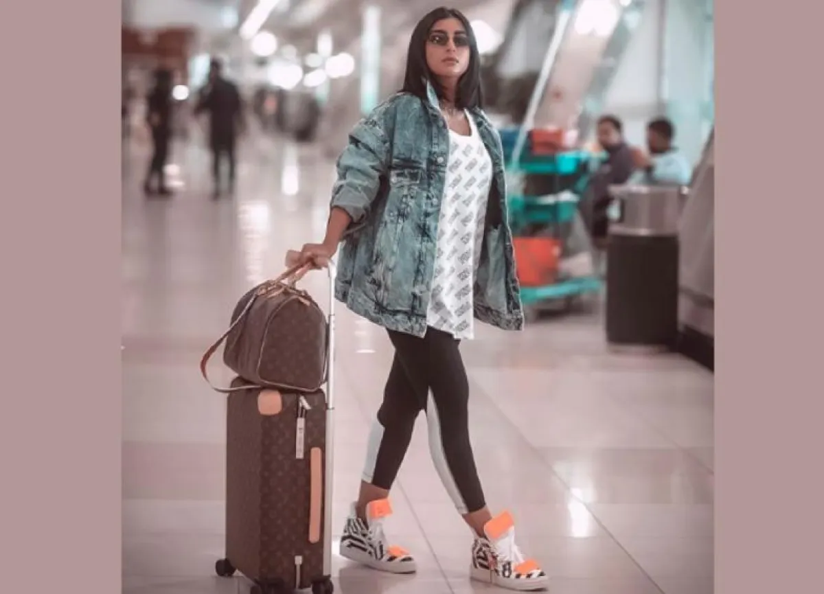 مؤخرًا شاهدنا بثينة الرئيسي في المطار، في اطلالة عصرية ذات طابع كاجوال ومريح، اختارت فيها بنطلونًا مطاطيًّا من القطن، نسقت معه تيشرت بقصة واسعة وجاكيت جينز من بالنسياغا Balenciaga، وأكملت اللوك بحذاء رياضي ذي تصميم لافت من أوف وايت Off White، أما حقائب السفر فقد اختارتها من دار لويس فويتون Louis Vuitton.