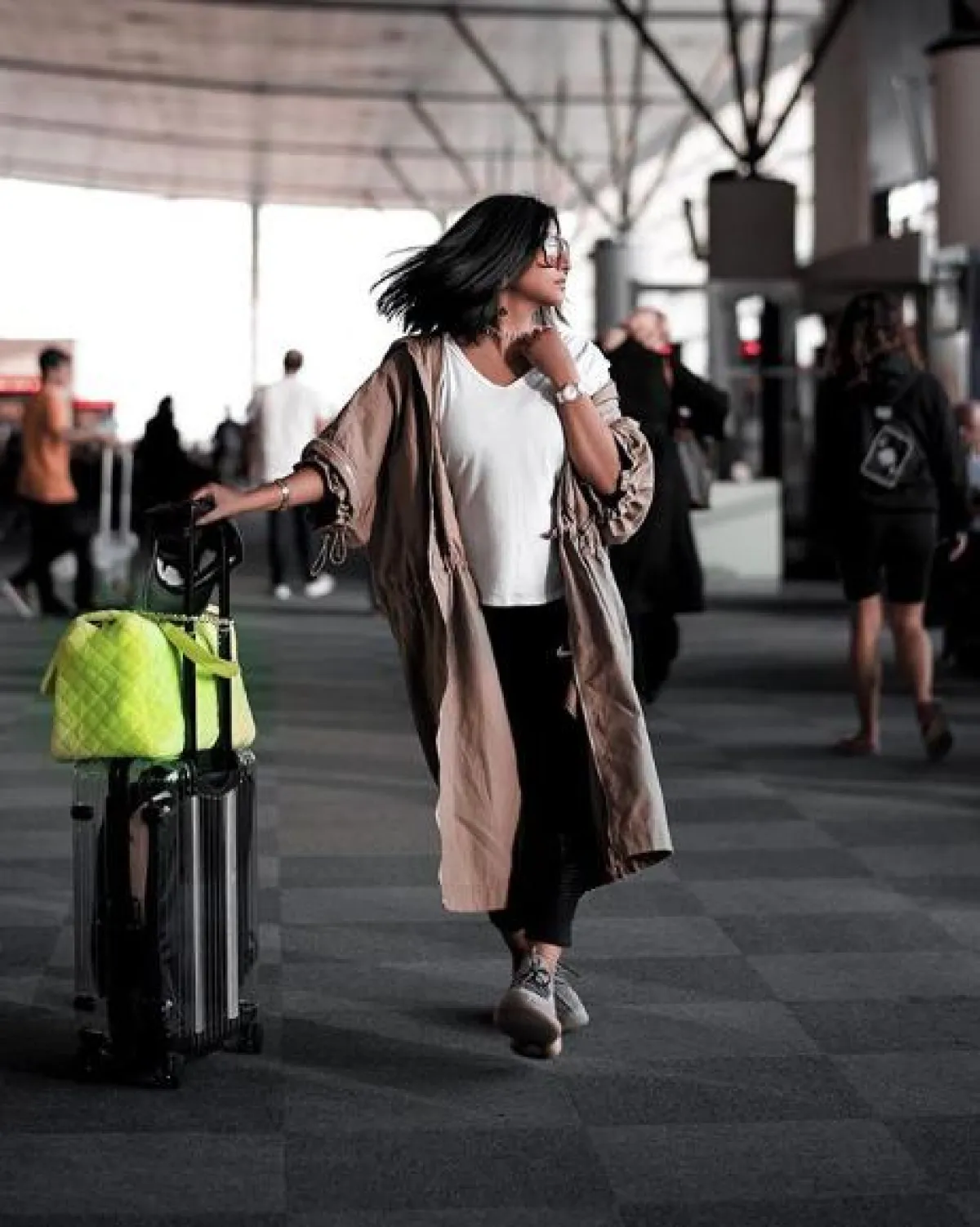 تنسيق عصري اعتمدته بثينة الرئيسي في المطار