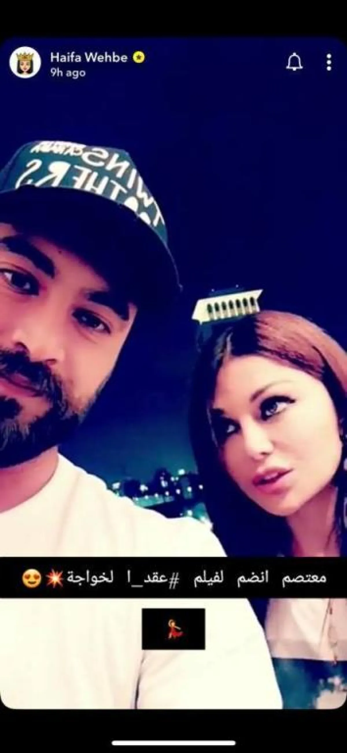 ظهر النجم السوري معتصم النهار بمقطع فيديو عبر سناب شات ولكن ليس من حسابه وإنما من حساب النجمة اللبنانية هيفاء وهبي التي يتشارك وإياها بطولة فيلم " عقد الخواجة " حيث أثار دهشة متابعيها، وعبر معتصم عن سعادته بالعمل مع هيفاء و اللقاء سوياً وقال معتصم في الفيديو : " انا كتير مبسوط وطاير عقلي اني شفتك .. حلوة حلوة كتير هيفا عالواقع".