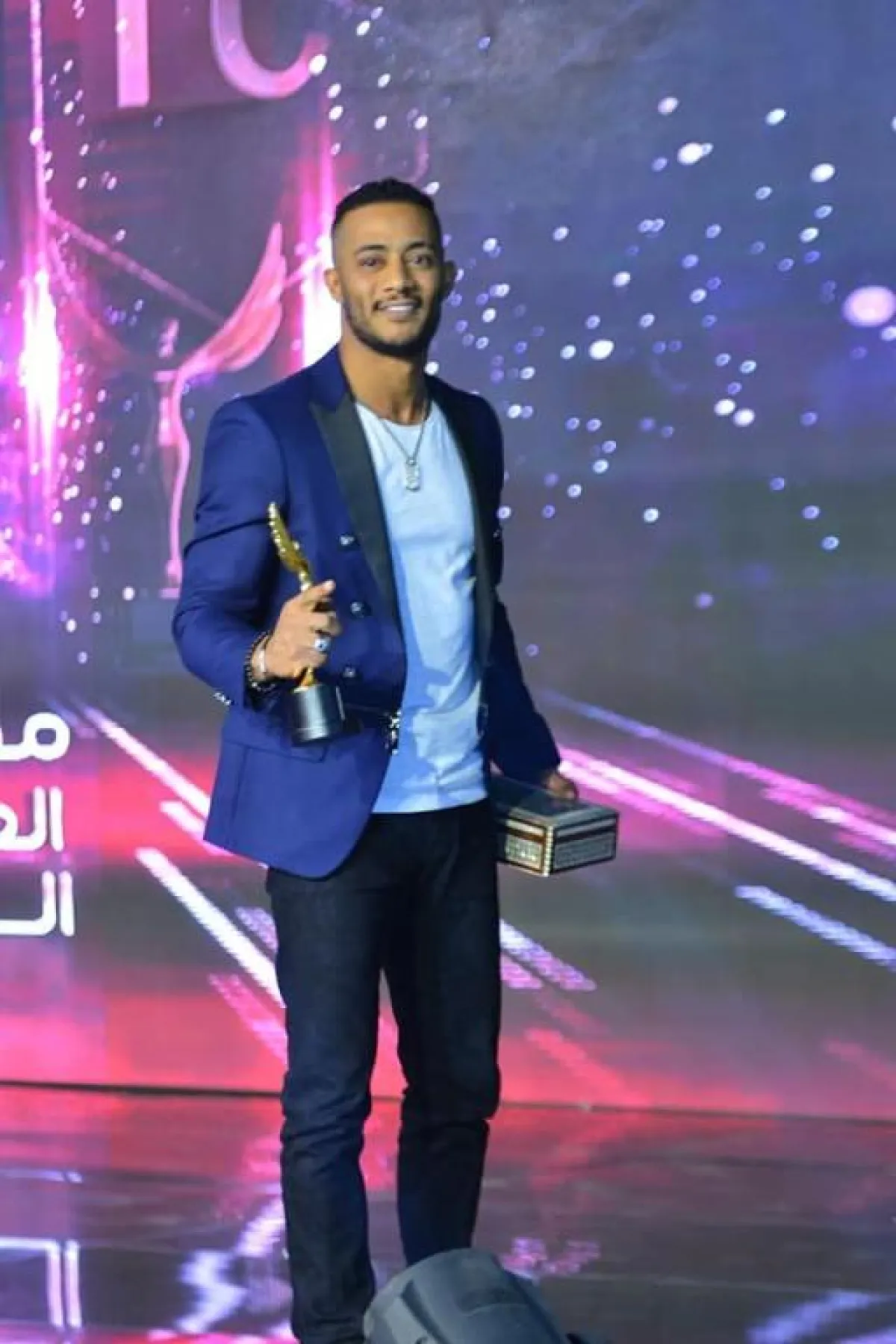 محمد رمضان مع جائزته