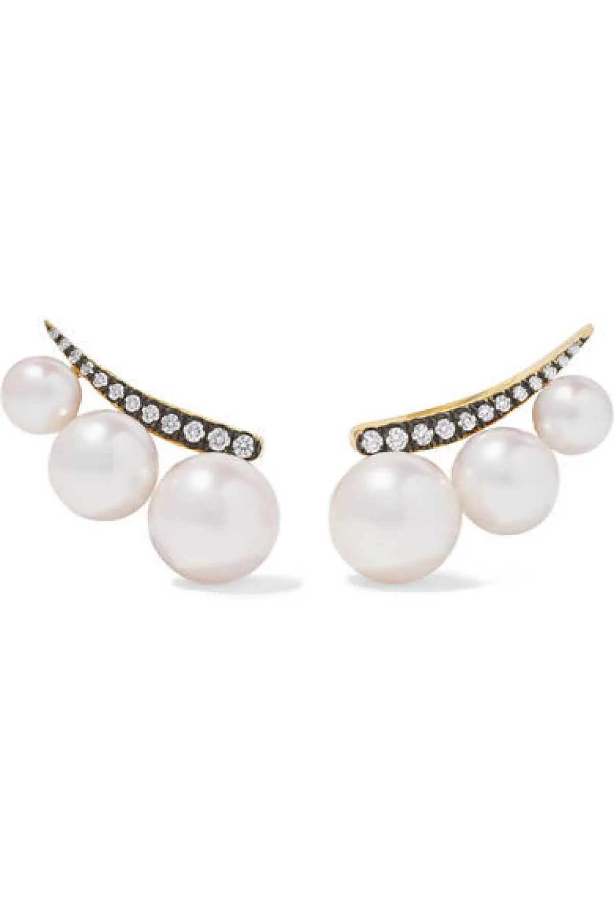 هذه الأقراط من Simone Rocha تناسب بالتأكيد اللواتي يفضلن اللؤلؤ في المجوهرات على أي شيء آخر، فهي تحتوي على عدد كبير من حبّات اللؤلؤ المتفاوتة الأحجام.