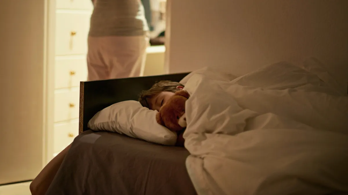 - تشجيع الطفل بلطف على النوم في غرفته.