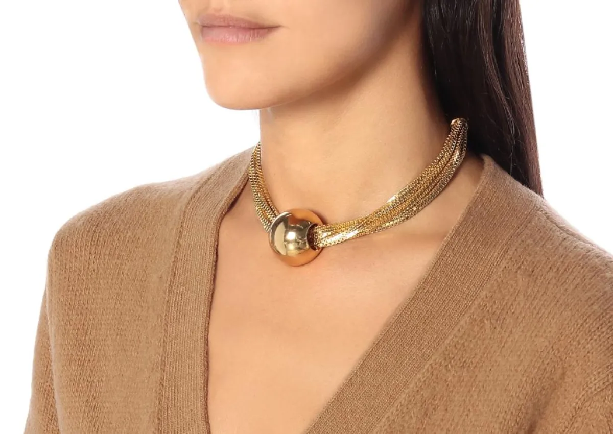 هذه القلادة من بوتيغا فينيتا bottega veneta بالتأكيد يجب أن تختاريها مع الفساتين البسيطة الخالية من التطريز، فهي كفيلة بأن تضفي لمعاناً ورونقاً لإطلالتك من دون الحاجة إلى أن يكون الفستان مطرز.