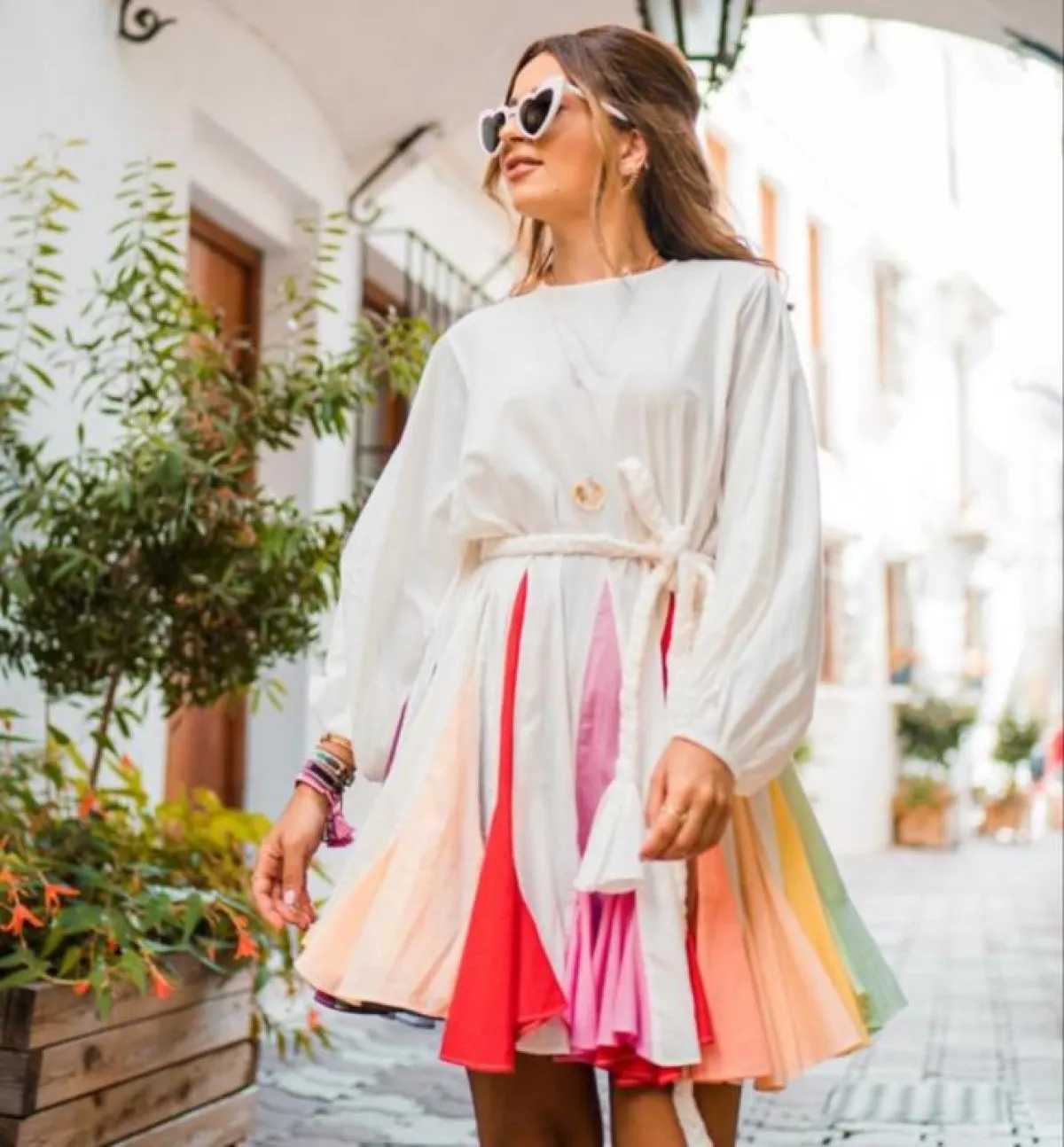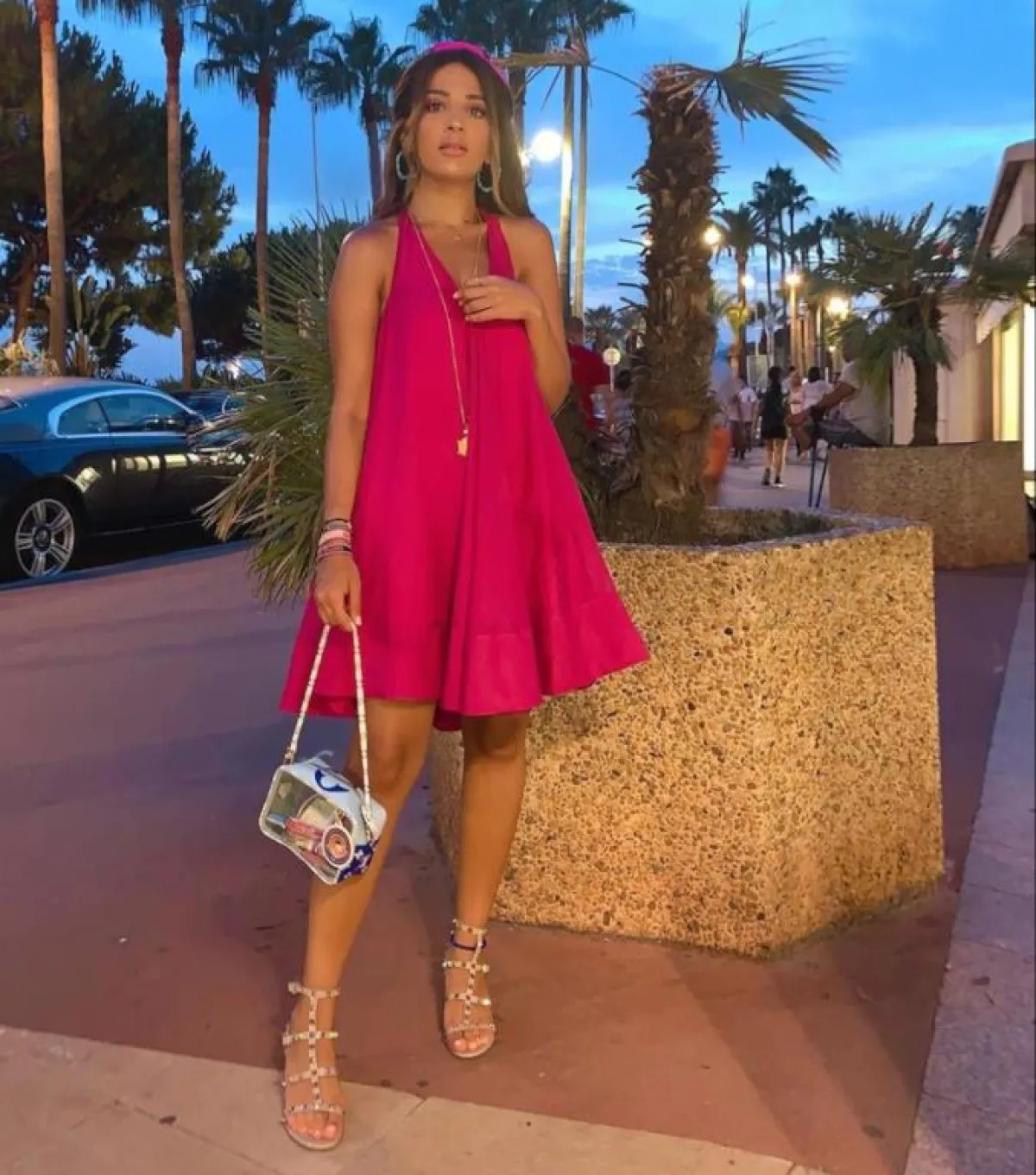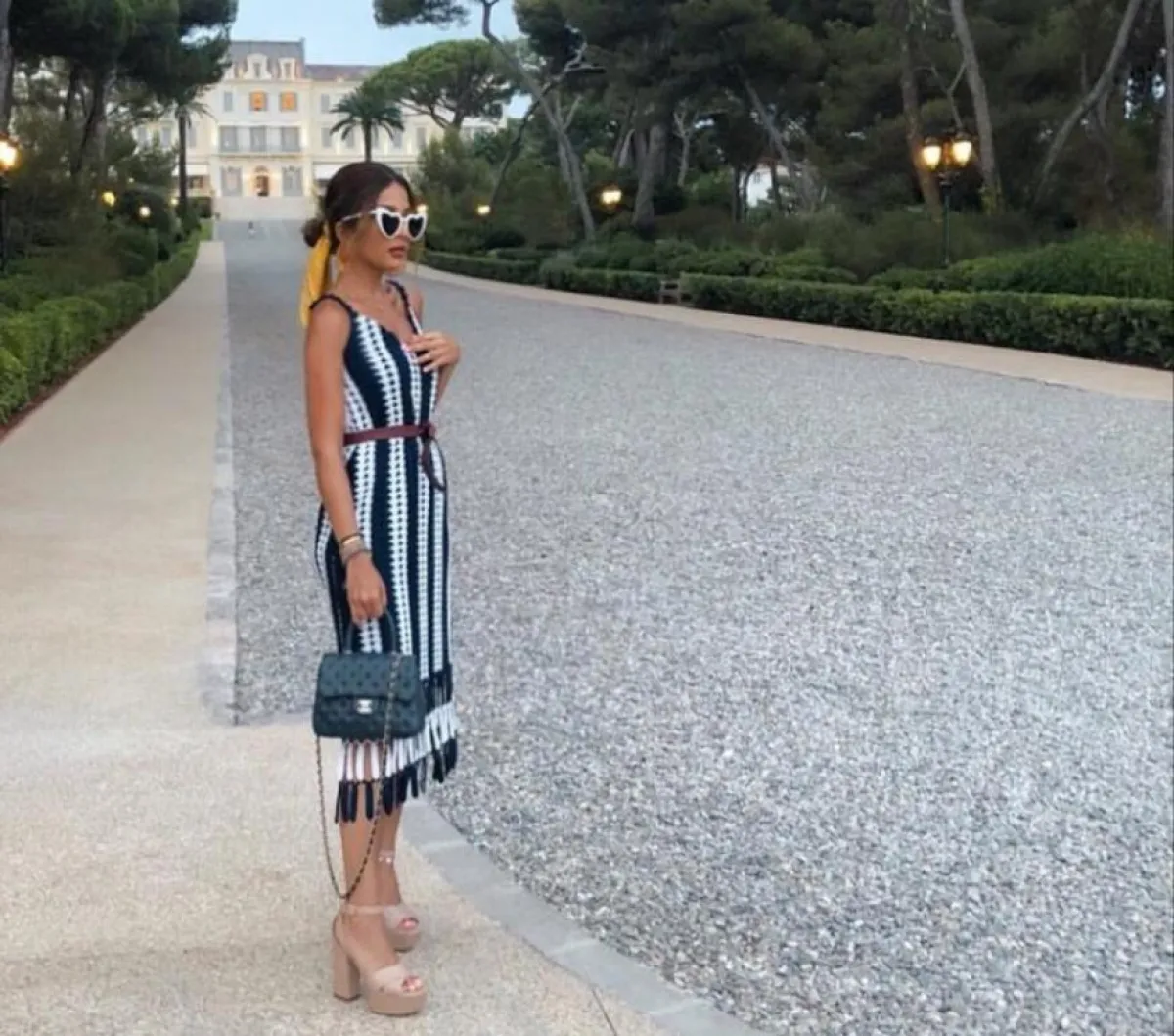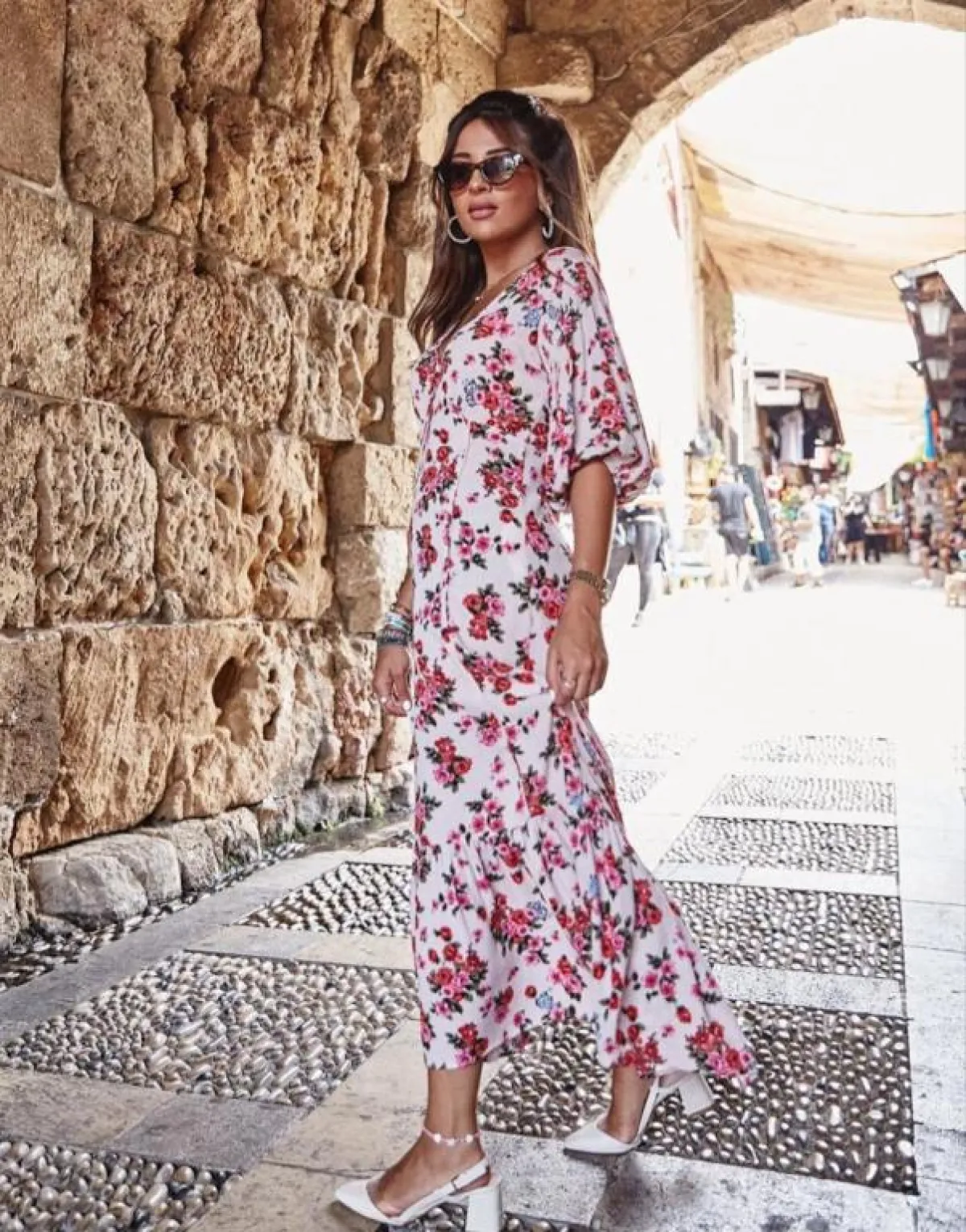 وتألقت ببنطال أخضر بنقوش باللونين الأبيض والأسود وقميص خفيف أبيض، وظهرت بفستان أبيض بطبقات عدة، مُزيَّن بزهور وقبعة قش لاطلالة بحرية مميزة، وأطلت ببنطال طويل وبلوزة قصيرة بالأبيض، وبتدرجات اللون الأحمر والزيتي والبرتقالي، كما اختارت فستانًا أبيضَ قصيرًا بأكمام طويلة وربطة خصر، مزيَّنًا بأقمشة عدة باللون الزهري والبرتقالي والأحمر والأخضر بطريقة مميزة وشبابية.
