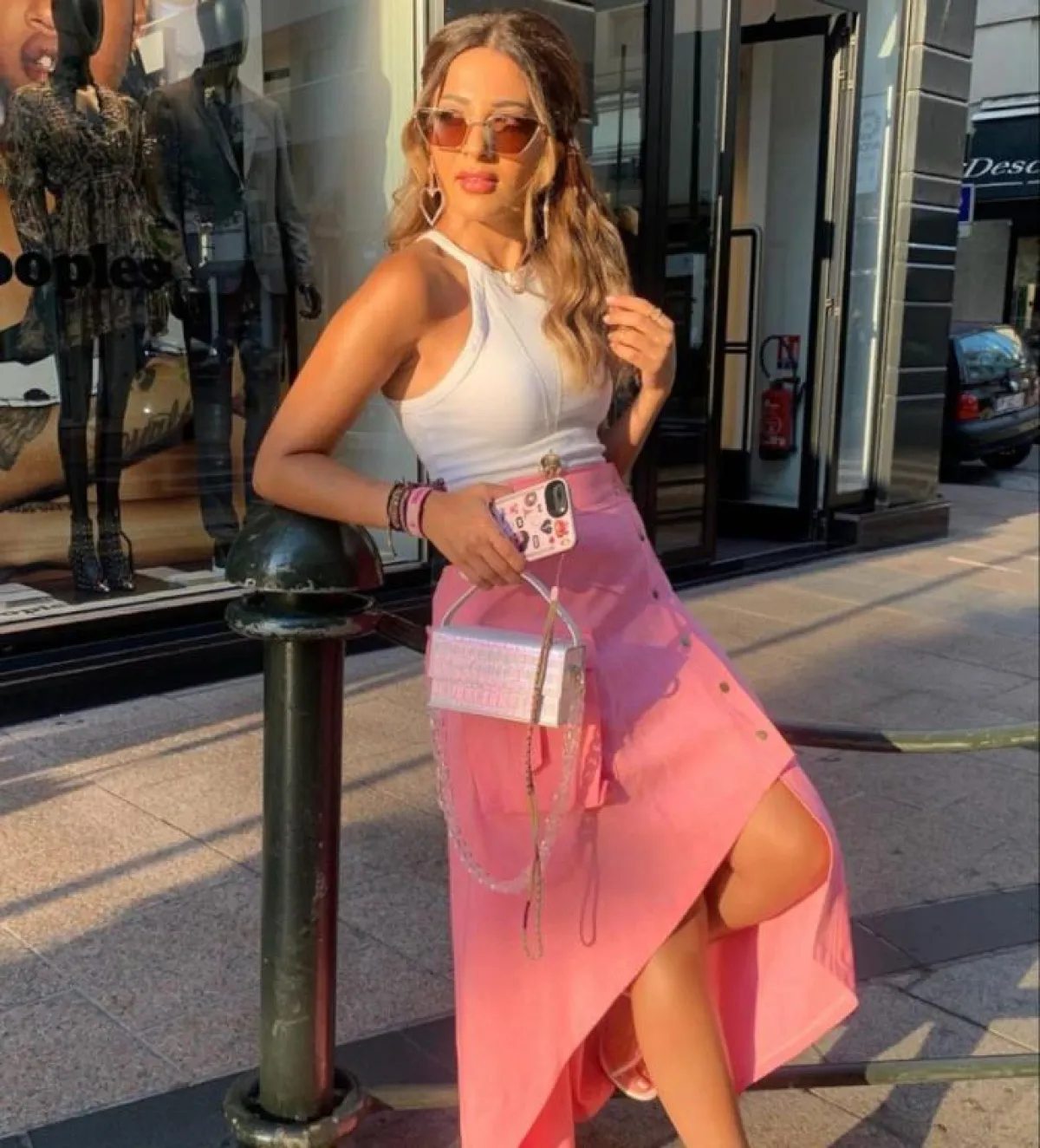 لأزياء يومية خفيفة، ارتدت تنورة زرقاء واسعة وبلوزة بيضاء أكملتهما بصندل وحقيبة يغلب عليهما الطابع الشبابي، مع نظارة عصرية، وتألقت بفستان أسود بنقوش عدة بيضاء، وتأنقت ببنطال بُنّي وبلوزة زيتية مع حقيبة مصنوعة من القش، وظهرت بتنورة ملونة مع وشاح وتيشيرت أسود بكتابة ملونة ونظارة عصرية.