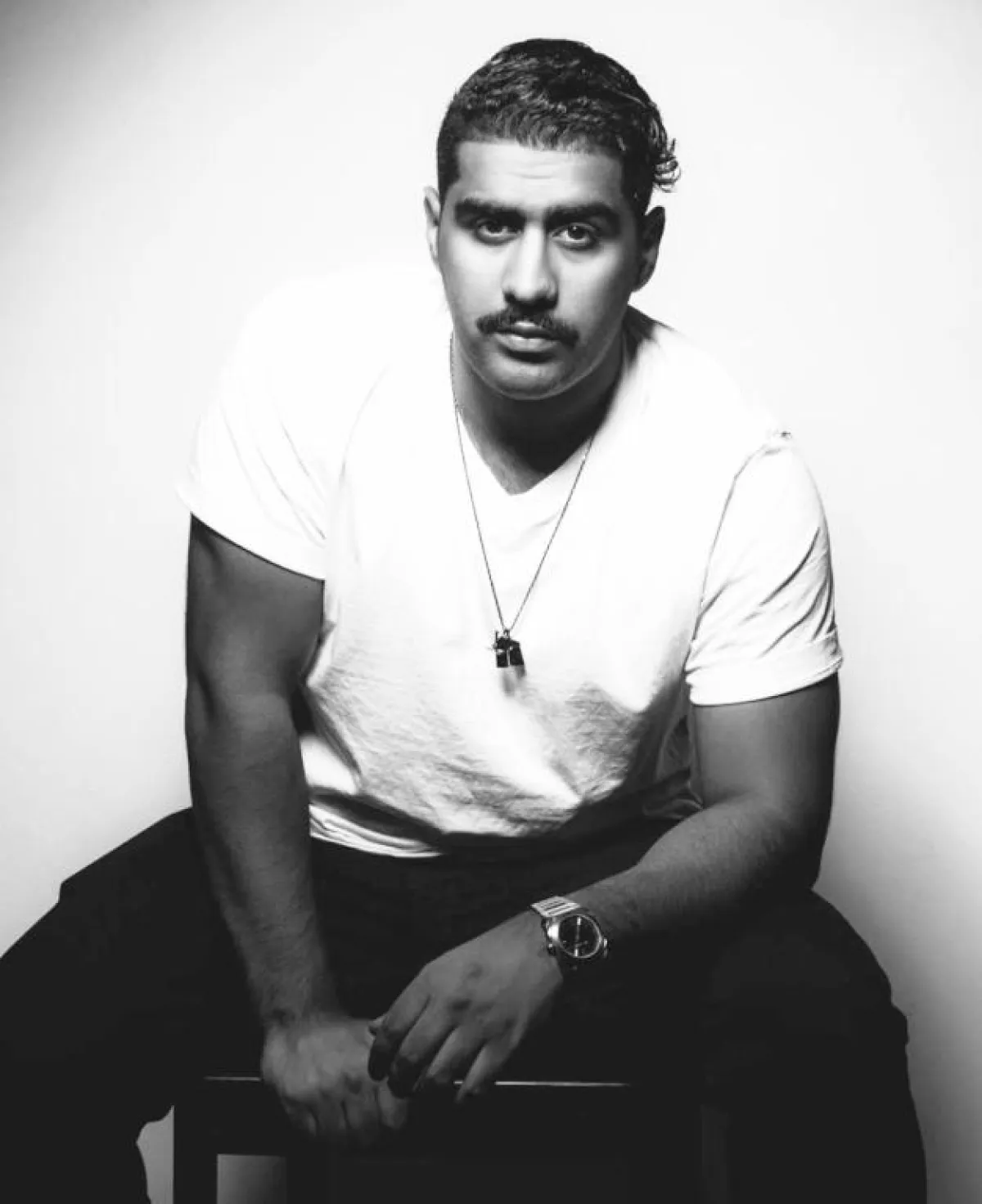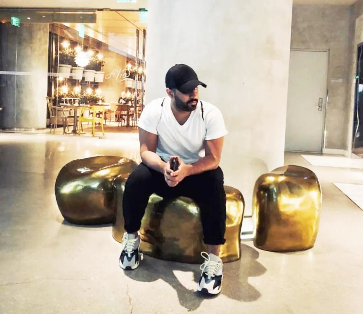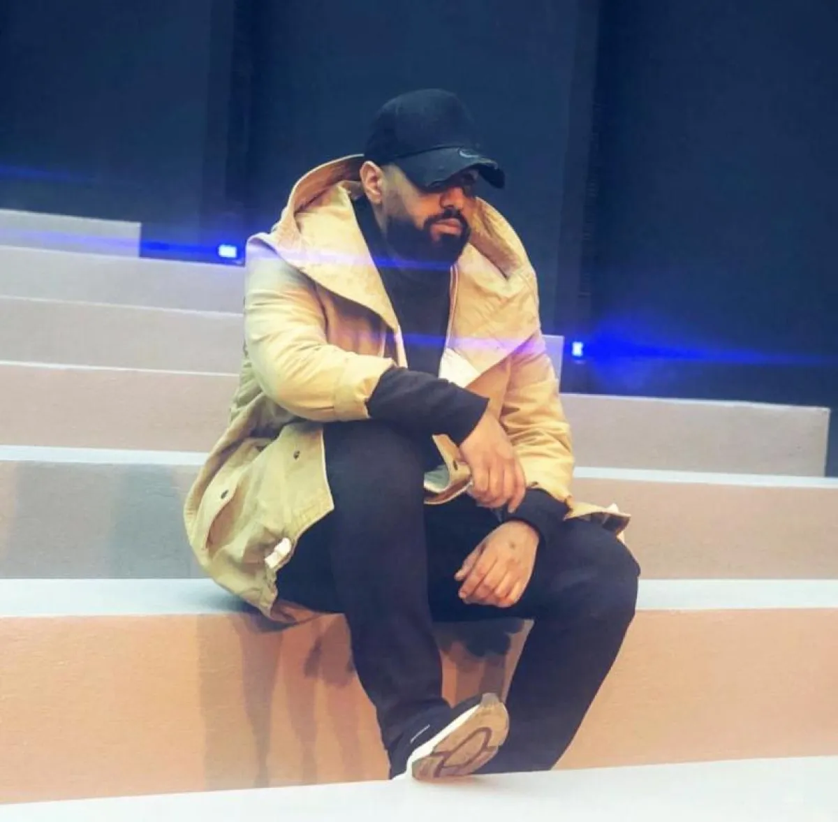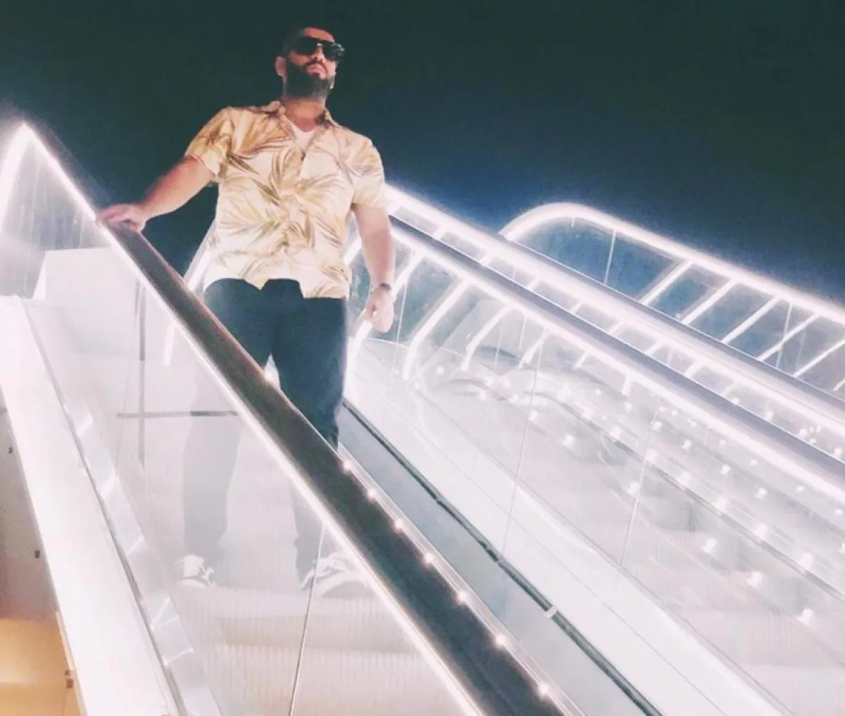 وفي الأحذية يميل للون الأبيض بأشكاله المتنوعة المختلفة، والرمادي كذلك، ويكمل اطلالاته بارتداء ساعات فضيَّة غالبًا، وسلاسل رجالية طويلة، وحقائب الخصر، ويختار اللون الأسود دائمًا في النظارات والكابات.