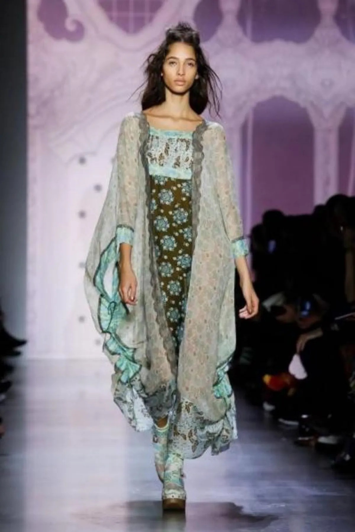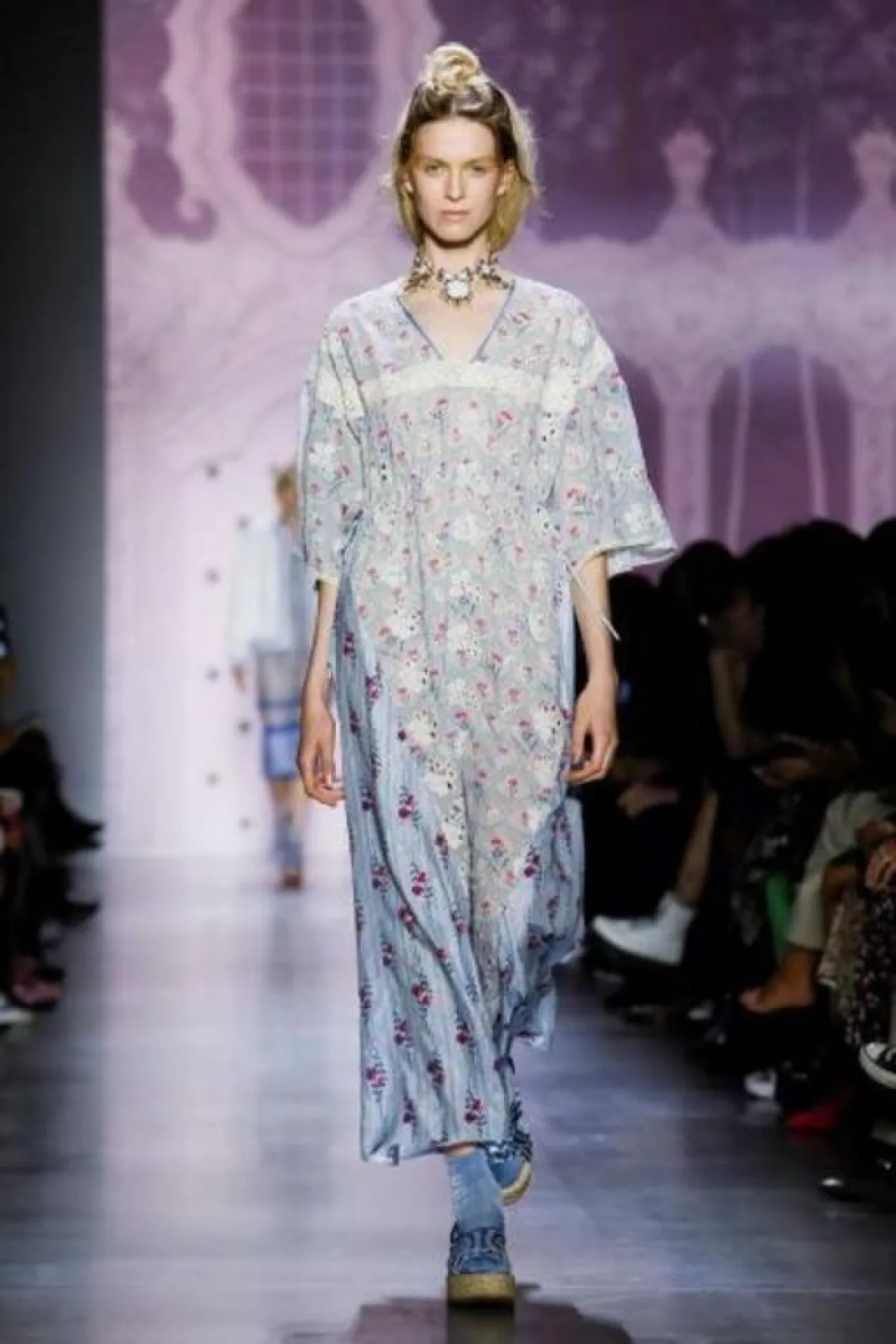- ركزت بعض الماركات مثل آنا سوي Anna Sui وكيت سبيد Kate Spade على القفاطين المغطاة بالطبعات الرقيقة والمصممة بطول متوسط يعلو الركبة وتناسب أجواء العطلات والتجمعات العائلية.