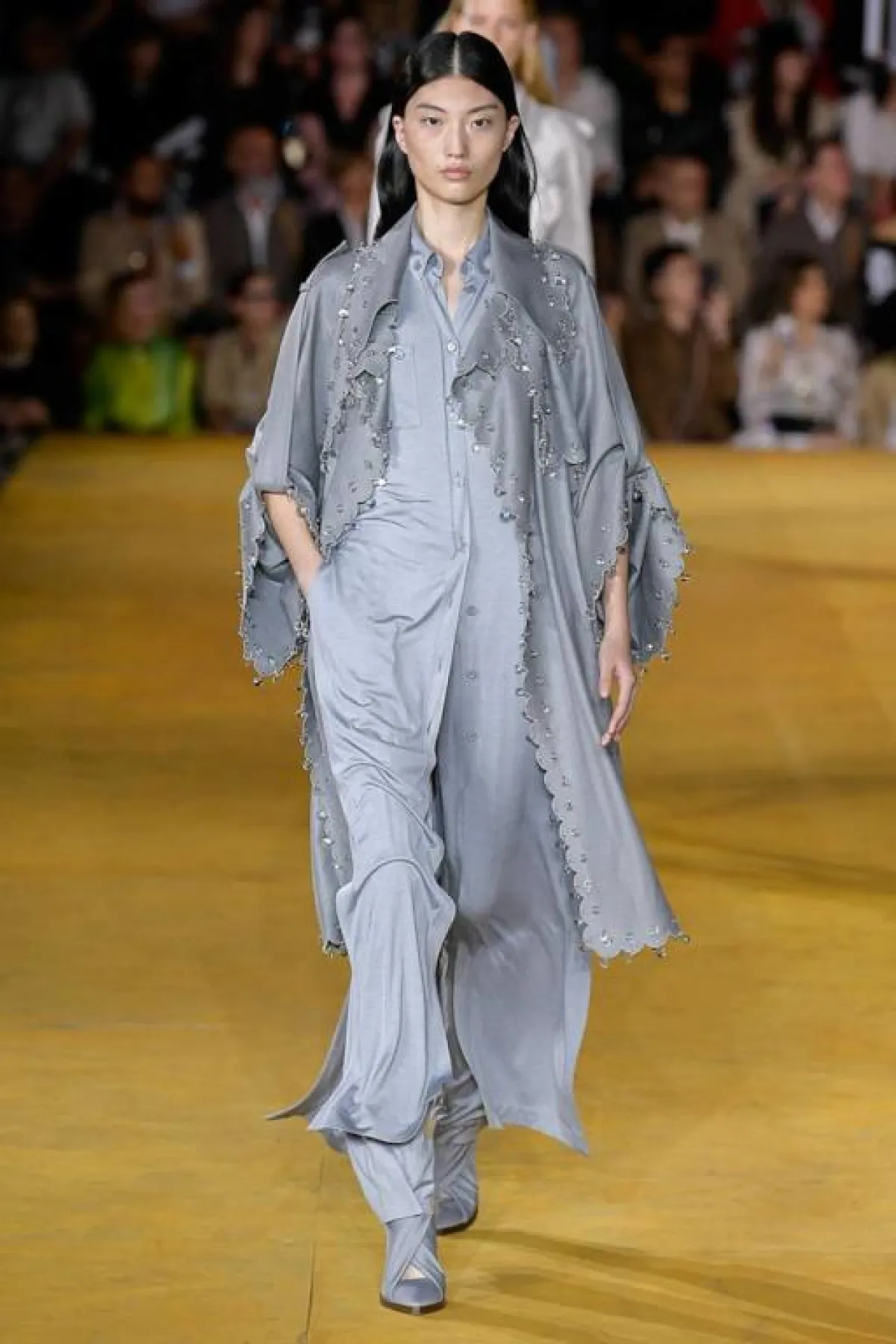 وكذلك كانت هناك الفساتين المصنوعة من التول الشفاف باللون الأسود، مع بطانة تحتيه باللون الأبيض، مع جاكيت مطرز بالدبابيس المعدنية تعبّر عن قوة المرأة، ولكنّ لمسة التول كانت تُظهر جمال أنوثتها.