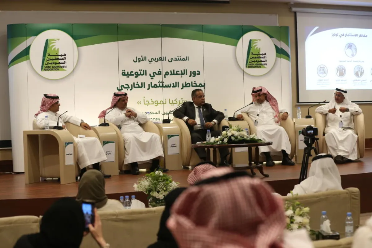 أطلقت هيئة الصحفيين السعوديين اليوم بالرياض أول منتدى عربي يسلط الضوء حول ( دور الإعلام في التوعية بمخاطر الاستثمار الخارجي "تركيا نموذجا")، في مقر هيئة الصحفيين السعوديين، وبحضور عدد من الخبراء الاقتصاديين والسياسيين والاجتماعيين.