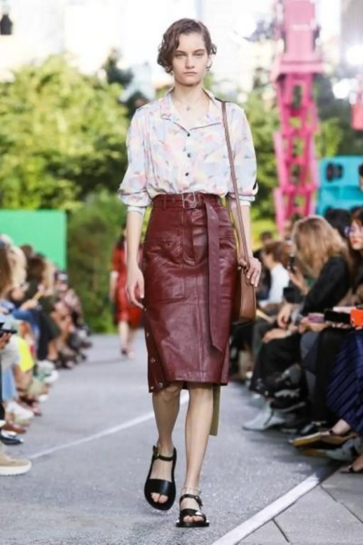 تمنح التنانير الجلد متوسطة الطول التي تغطي الركبة لمن ترتديها لوك عصري وأناقة لا تضاهى تعيد إلى أذهاننا موضة الثمانينات، نسقيها على غرار عارضات Coach 1941 مع البلايز ذات الطبعات الناعمة.