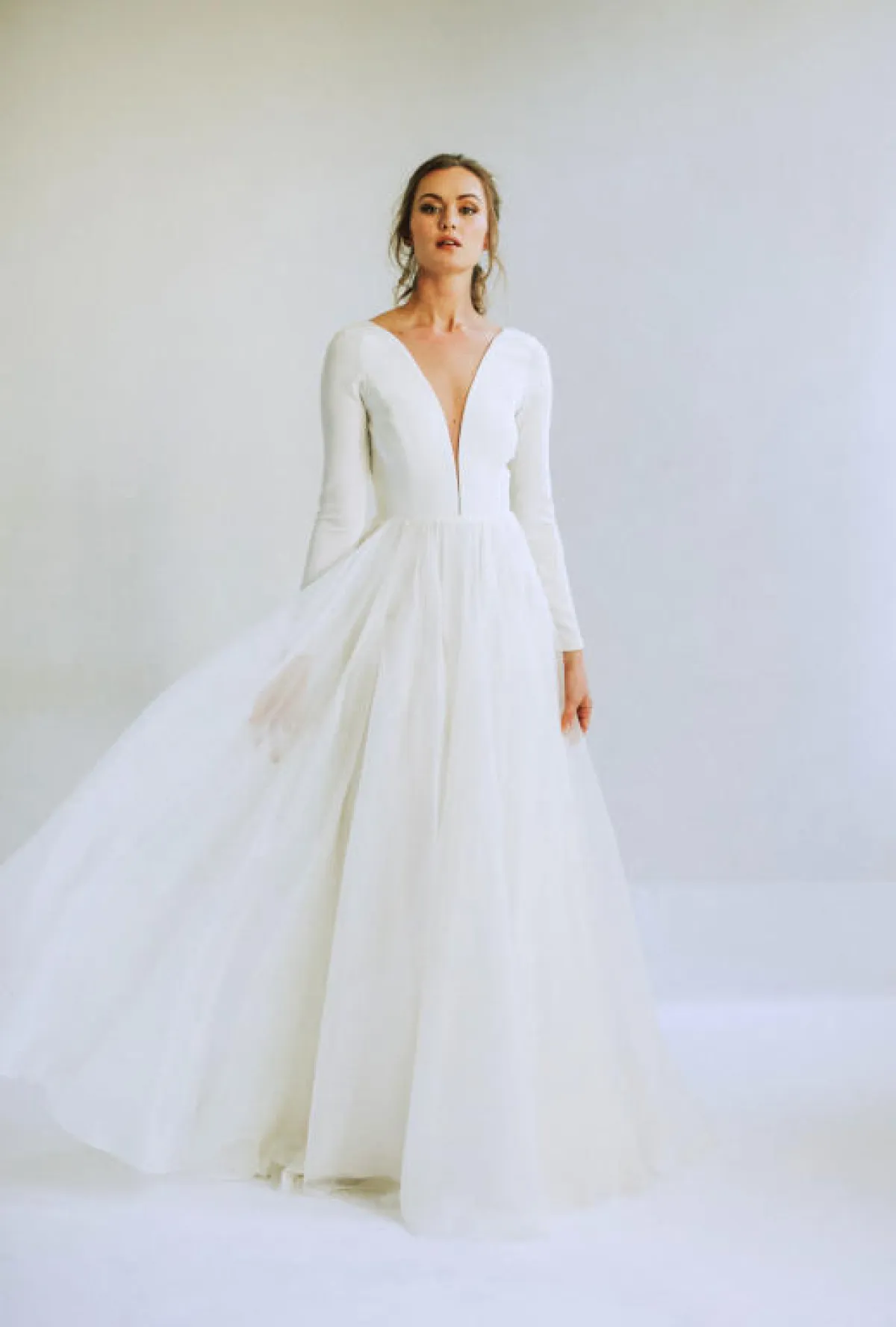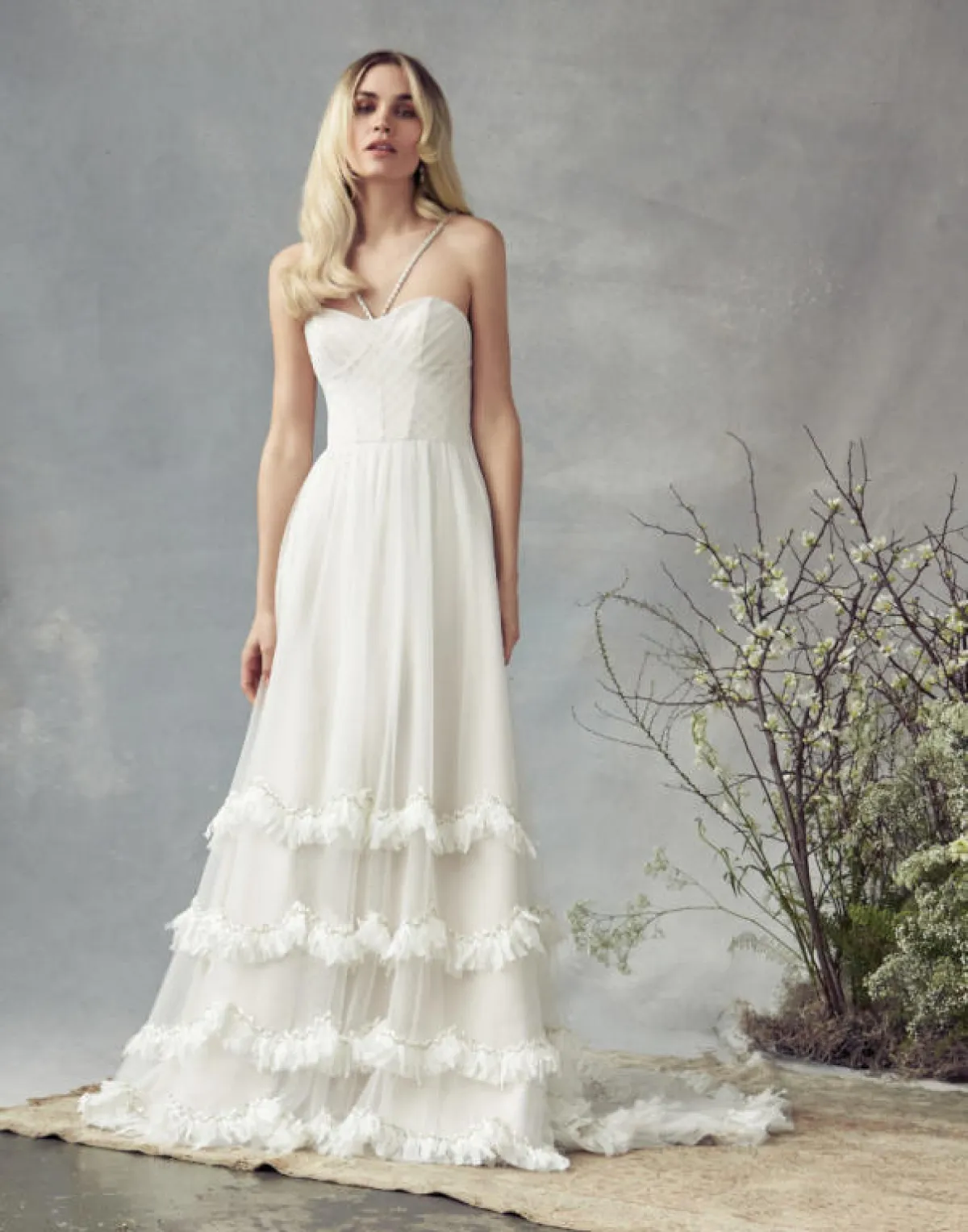 قدمت ماركة Leanne Marshall فساتين زفاف منفوشة بتنانير شيفون.