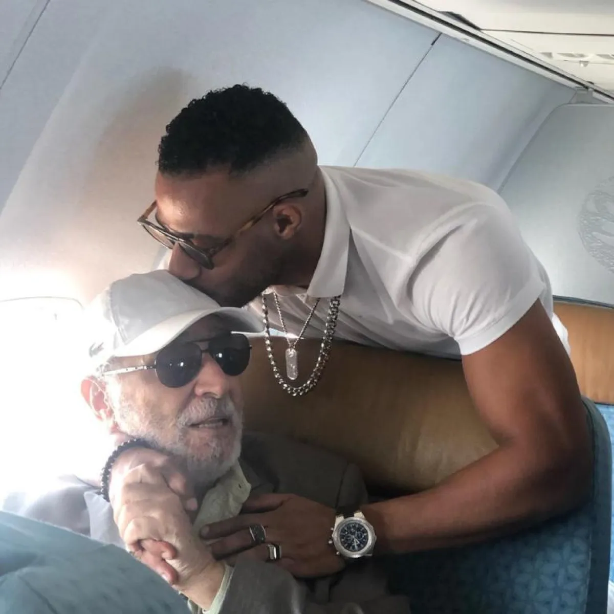 محمد رمضان يقبل رأس الفنان القدير عبد الرحمن أبو زهرة في الطائرة