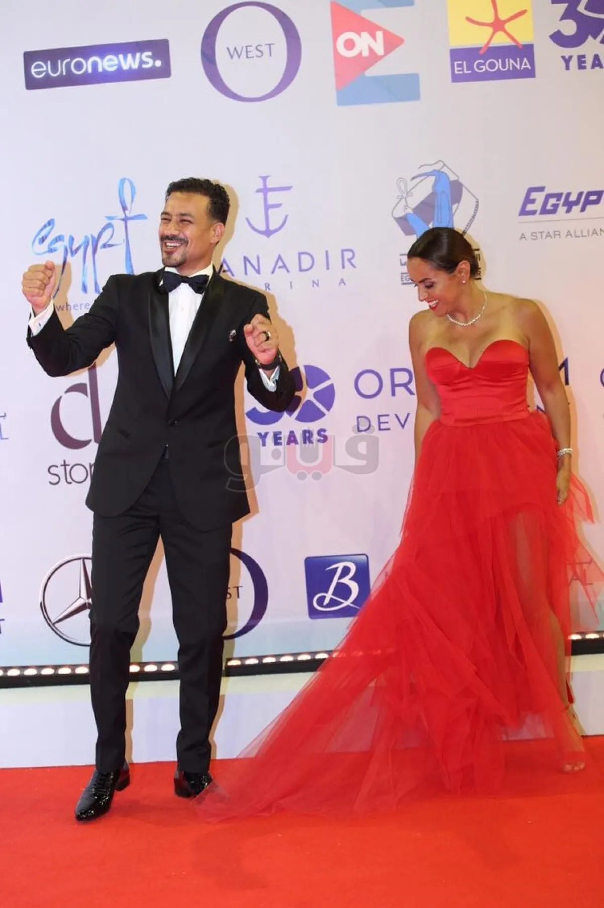 فاجأ الفنان أحمد داود وزوجته الفنانة علا رشدي، حضور مهرجان الجونة السينمائي في دورته الثالثة، برقصة سريعة على السجادة الحمراء أثناء حضورهما حفل الافتتاح المقام أمس.