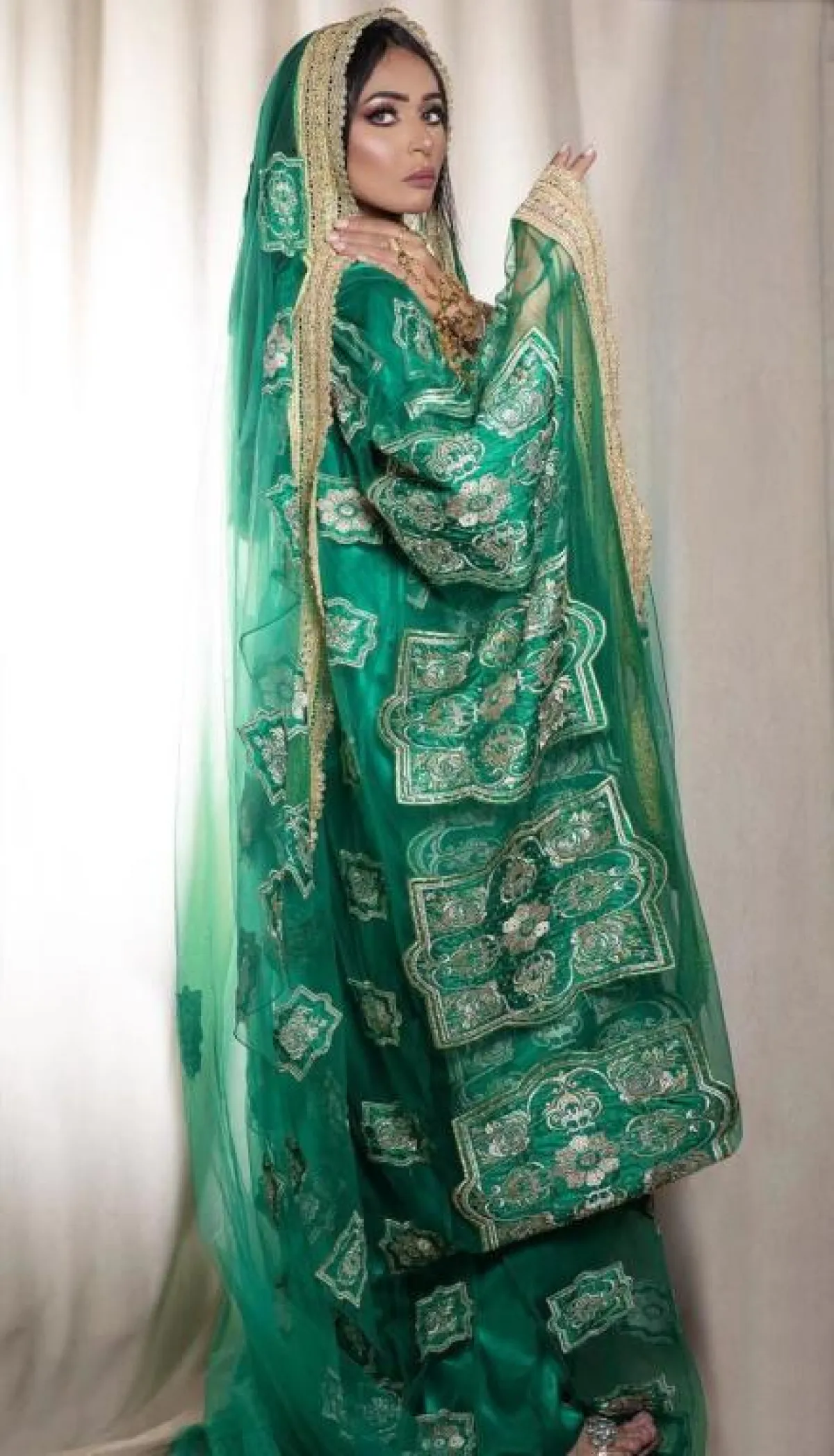 في جلسة خاصة لليوم الوطني، تألقت الإعلامية والفنانة السعودية شيماء الفضل بارتداء الزيّ الشعبي القديم، الذي يتكون من قطعة شعبية تقوم بتغطية كاملة للجسم، إضافةً إلى أغطية الرأس وعدد من الحلي والزينة المكمِّلة، لتُلهمك فكرة لتنسيقات رائعة بطريقة عصرية من وحي الزيّ السعودي التراثي في هذا اليوم المميز.