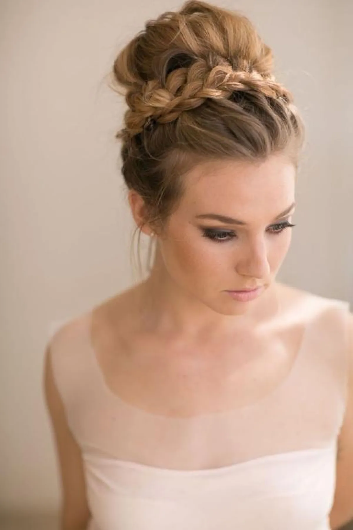 هذه التسريحة تمنحكِ لمسة مخملية ناعمة، كما أنها مثالية لوجهكِ المدور، فمع الغرة والضفيرة على جنب، سوف تجعل شكل وجهكِ يبدو مسحوبًا بطريقة ناعمة وأنيقة، لتحصلي على مظهر مميز يوم زفافِك.