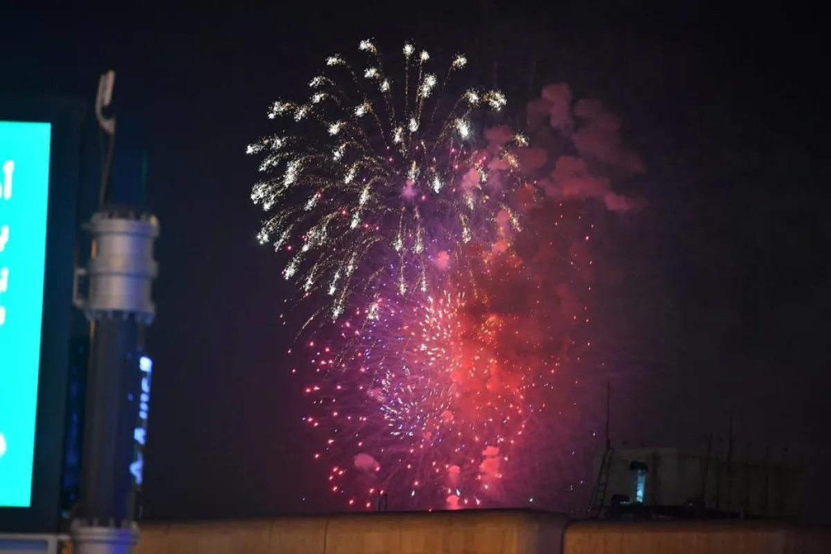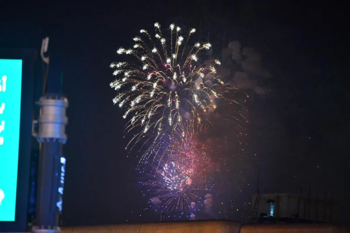كما جرى إطلاق العديد من الألعاب النارية بألوانها الجذابة وأشكالها المبهرة لتزين سماء العاصمة الرياض، وتدخل السرور على قلب كل من شاهدها.