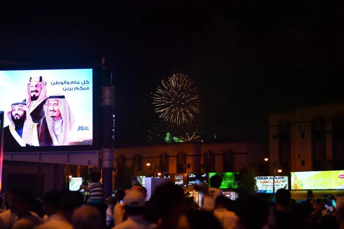 وفعليًا بدأ أمس الاحتفال بـ "اليوم الوطني الـ 89"، حيث اكتست شوارع المدن وميادينها باللون الأخضر، وخرج المواطنون بحب وبهجة إلى أماكن الاحتفالات للتعبير عن حبهم لوطنهم الغالي، ومشاهدة العروض المقدَّمة، خاصةً عروض الفرق الشعبية التي عرضت لوحات راقصة من وحي التراث السعودي، واجتذبت مناطق الفعاليات في الرياض الأهالي كبارًا وصغارًا، حيث حرصت الجهات المنظِّمة على أن تشمل الفعاليات الجميع، وتلبي رغبات كافة فئات المجتمع.